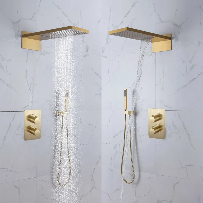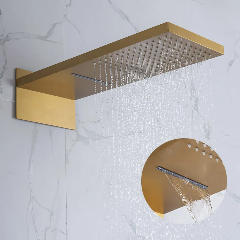 Brushed Gold Pressurized Rain Shower System 2 Function Brass Luxury Shower set