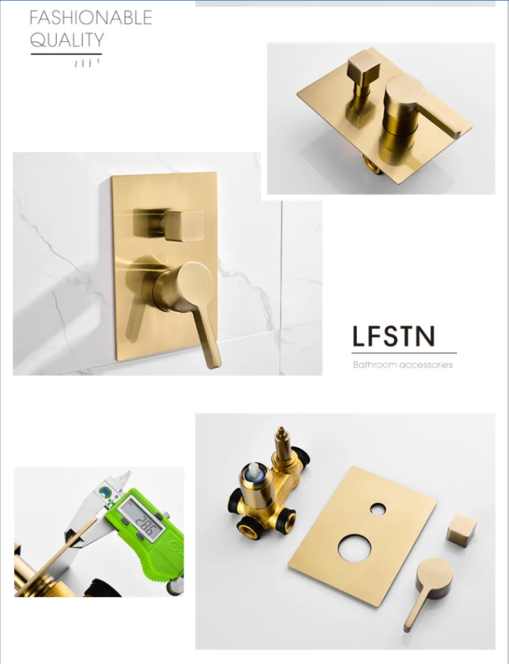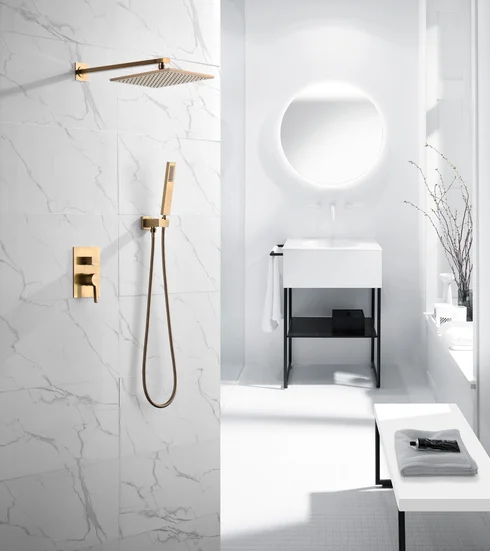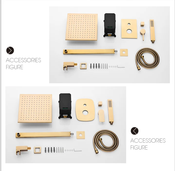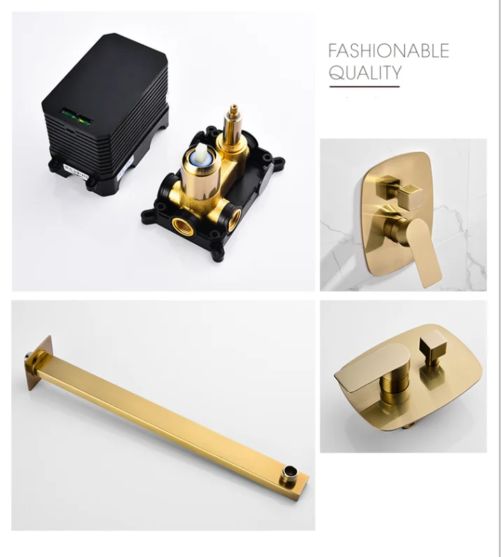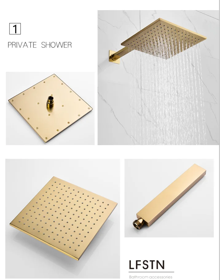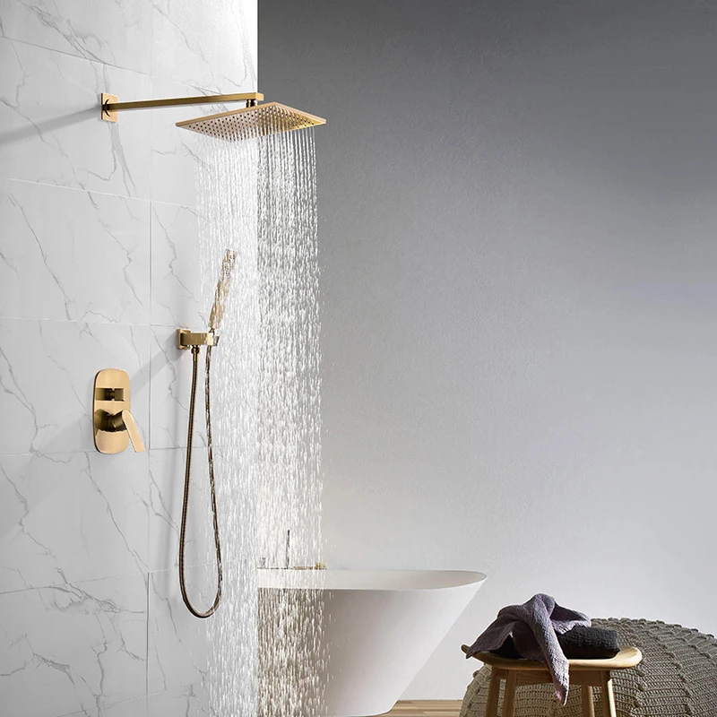 Home Bathroom Products,Sinks Bathroom Faucet & Shower Bathtub Faucet &Shower Faucet Hongdec Sanitary Ware Co., Ltd. Rainfall shower system in brushed gold wall mounted shower set 10 inch square shower head