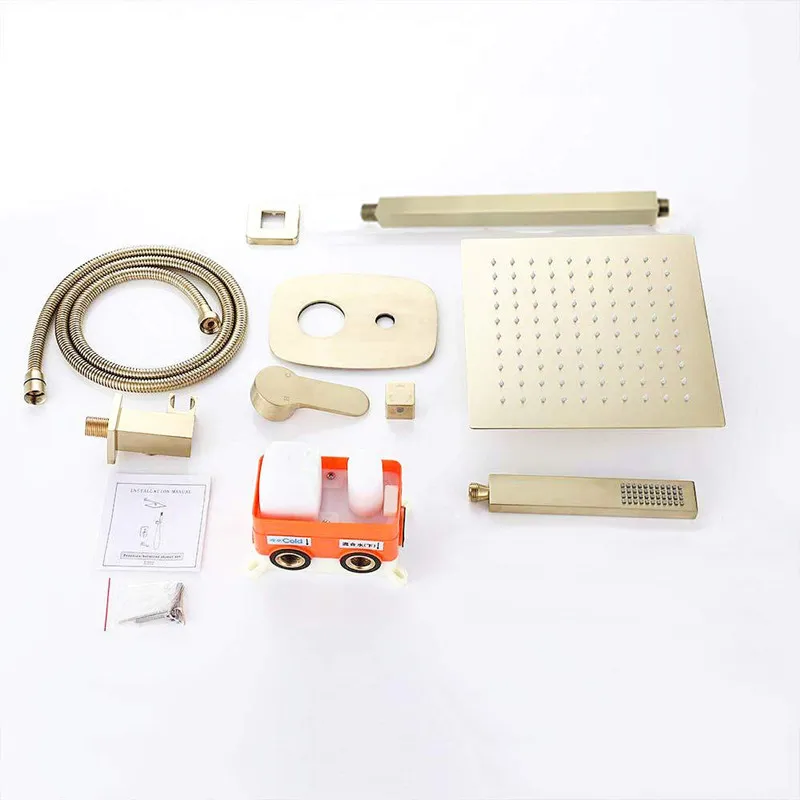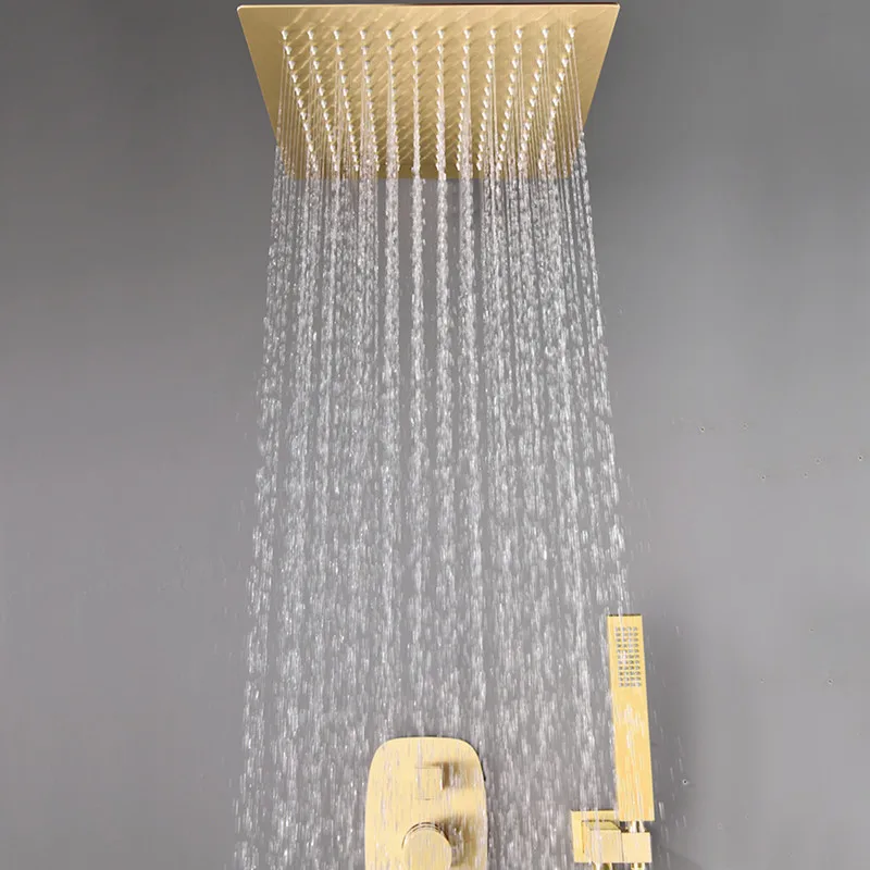 Bathroom ceiling mounted Rain Mixer Combo Set Wall Mounted Rainfall Shower Head System Brushed Gold