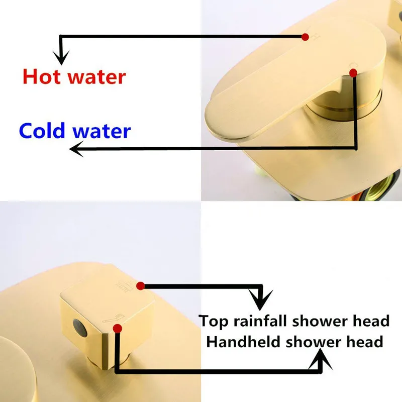 Home Bathroom Products,Sinks Bathroom Faucet & Shower Bathtub Faucet &Shower Faucet Hongdec Sanitary Ware Co., Ltd. Bathroom ceiling mounted Rain Mixer Combo Set Wall Mounted Rainfall Shower Head System Brushed Gold
