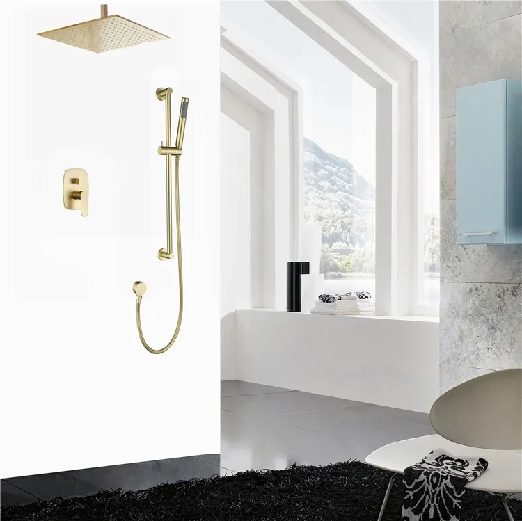 Home Bathroom Products,Sinks Bathroom Faucet & Shower Bathtub Faucet &Shower Faucet Hongdec Sanitary Ware Co., Ltd. Ceiling Concealed Brass Brushed Gold Rainfall Shower System with Slide Bar