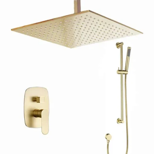 Ceiling Concealed Brass Brushed Gold Rainfall Shower System with Slide Bar