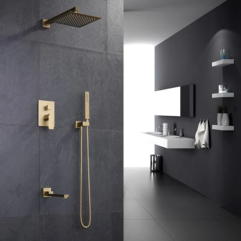 Home Bathroom Products,Sinks Bathroom Faucet & Shower Bathtub Faucet &Shower Faucet Hongdec Sanitary Ware Co., Ltd. Concealed Shower Mixer Brushed Gold Brass Waterfall Rain Shower System HD-9999