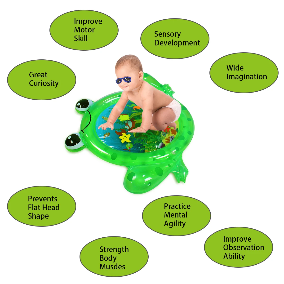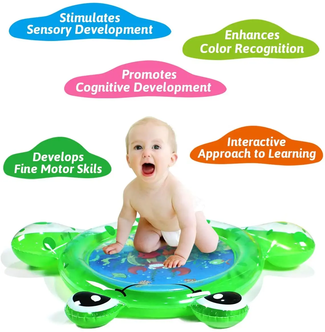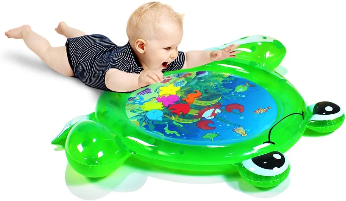 * BEST TUMMY TIME TOY: Enjoy the water time without getting wet! Your infant baby would be fascinated by the bright sea world graph and cute floating toys in the water. Parents can also have a fun time for watching the baby laugh and play