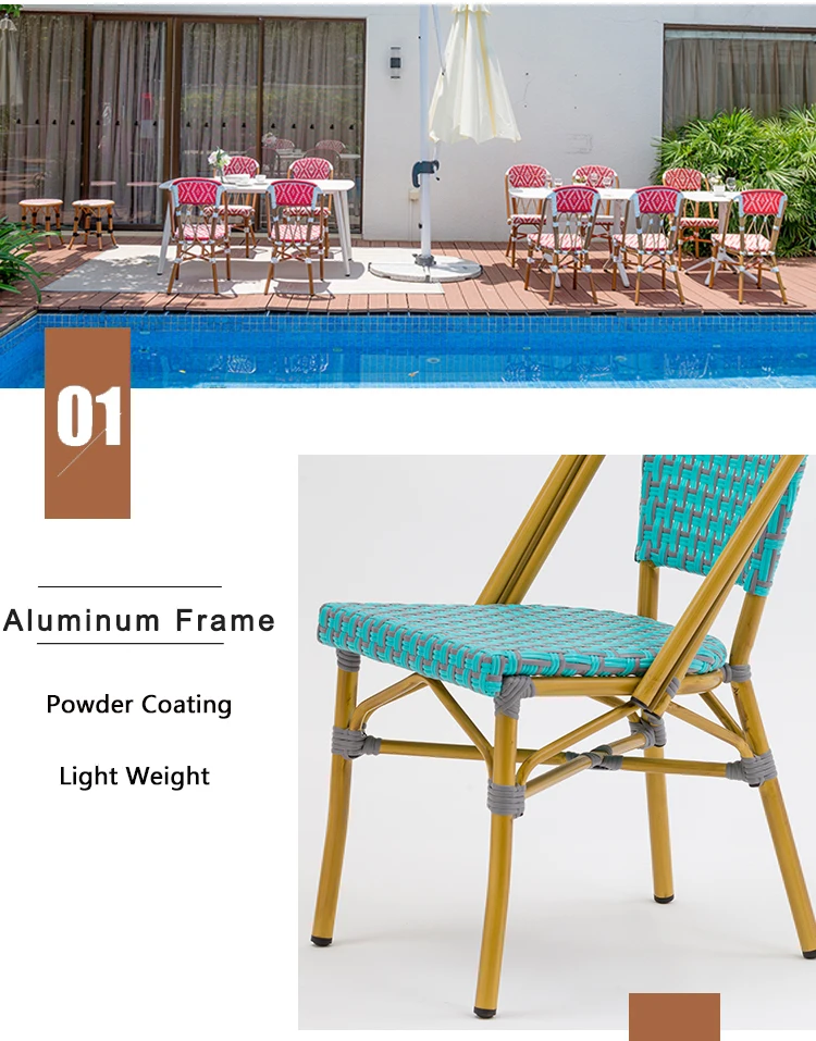 Factory Supply PE Plastic Cane Rattan Chair All Weather UV Resistant Outdoor Garden Chair Sets for Bistro Restaurant Cyber Cafe