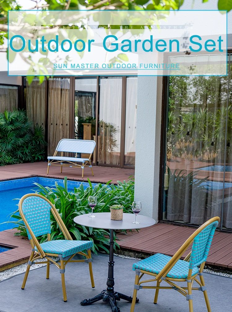 Home Outdoor Living & Household Photovoltaic Power Generation Outdoor Furniture Outdoor Table & Chair Set Foshan Sun Master Furniture Co., Ltd. Factory Supply PE Plastic Cane Rattan Chair All Weather UV Resistant Outdoor Garden Chair Sets for Bistro Restaurant Cyber Cafe