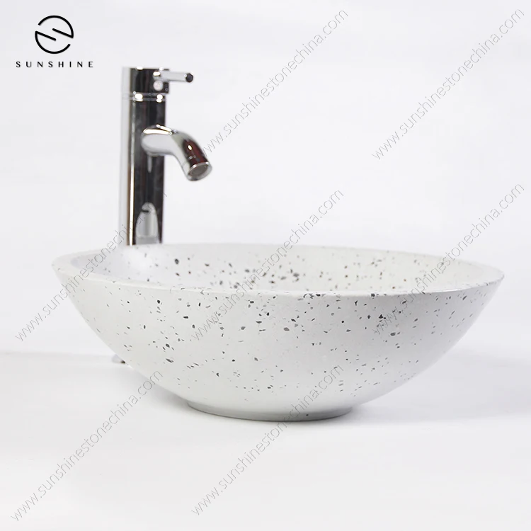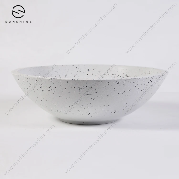 Bathroom Counter Top Basin Round Terrazzo White Simple Bowl Sink