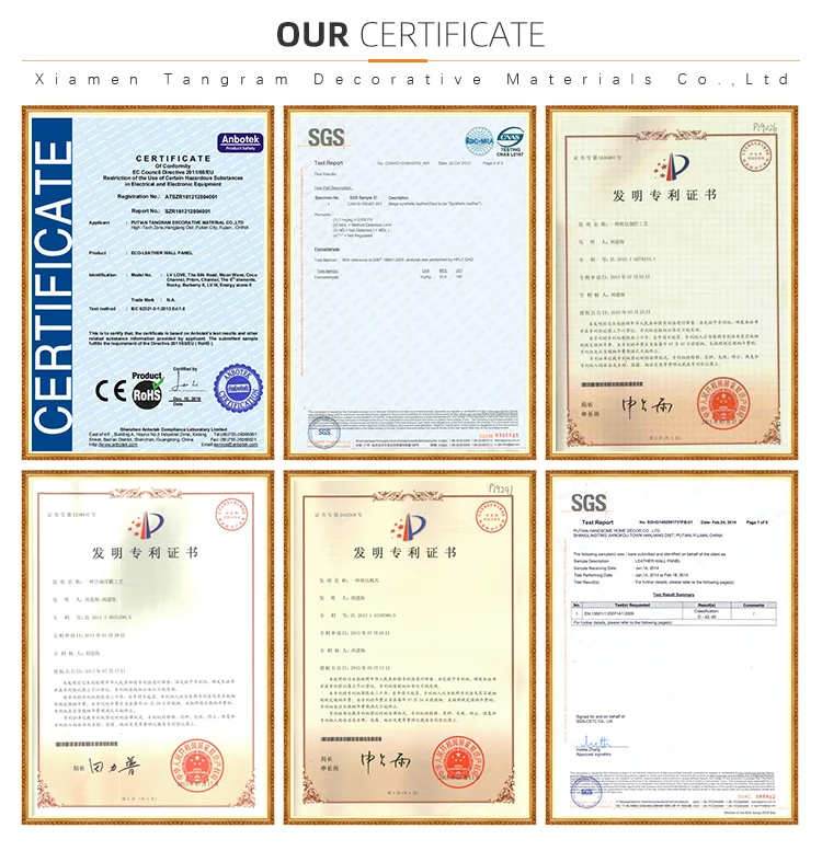 Zero-formaldehyde; Water & Moisture proof; Fire retardant; Sound proof; Collision avoidance; Easy installation; Secondary use;Safety; Bend easily; Light Weight; Simple designs; EU CE Certification...
