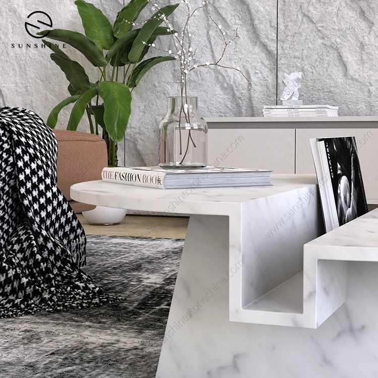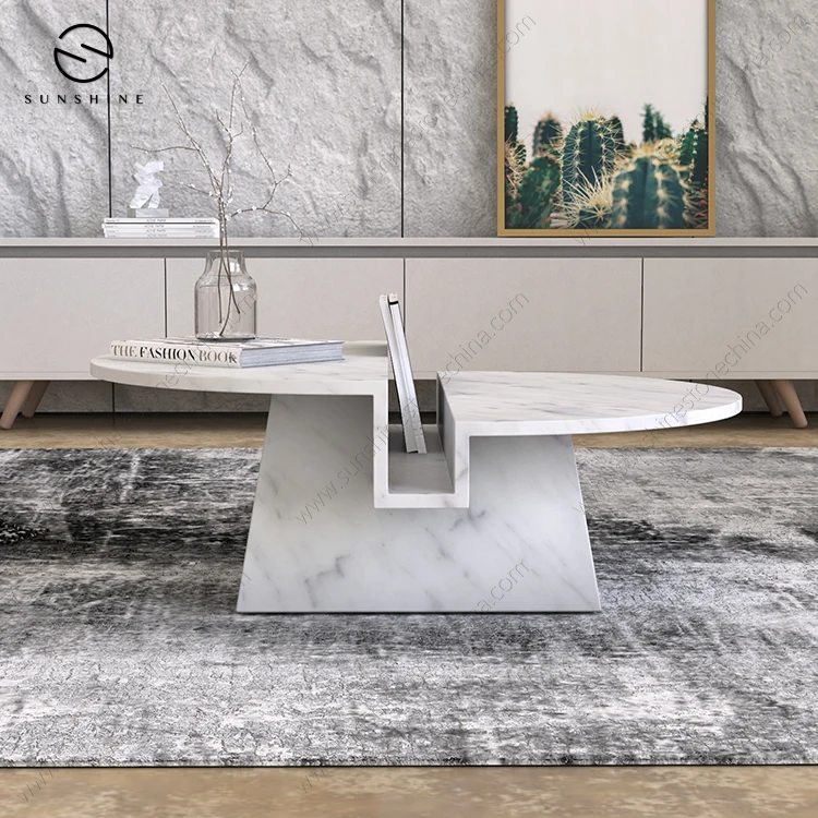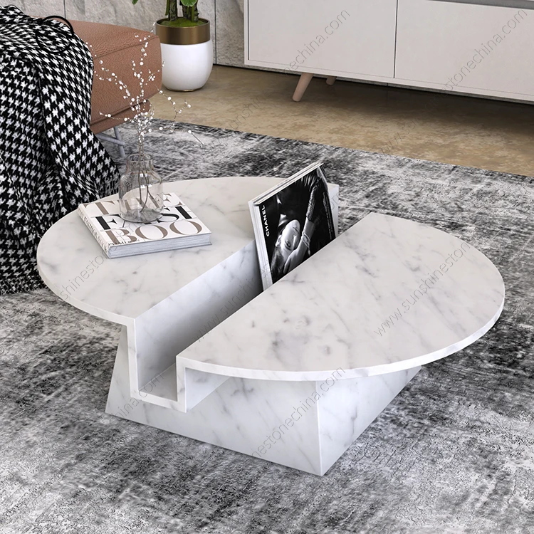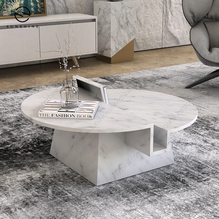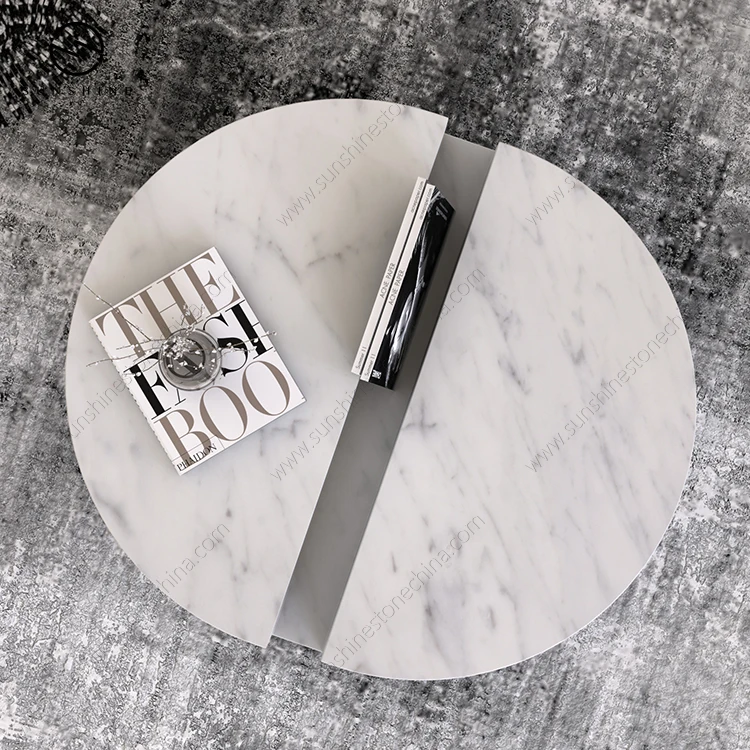 Luxury Italian Carrara White Marble Round Table Coffee Table With Unique Design