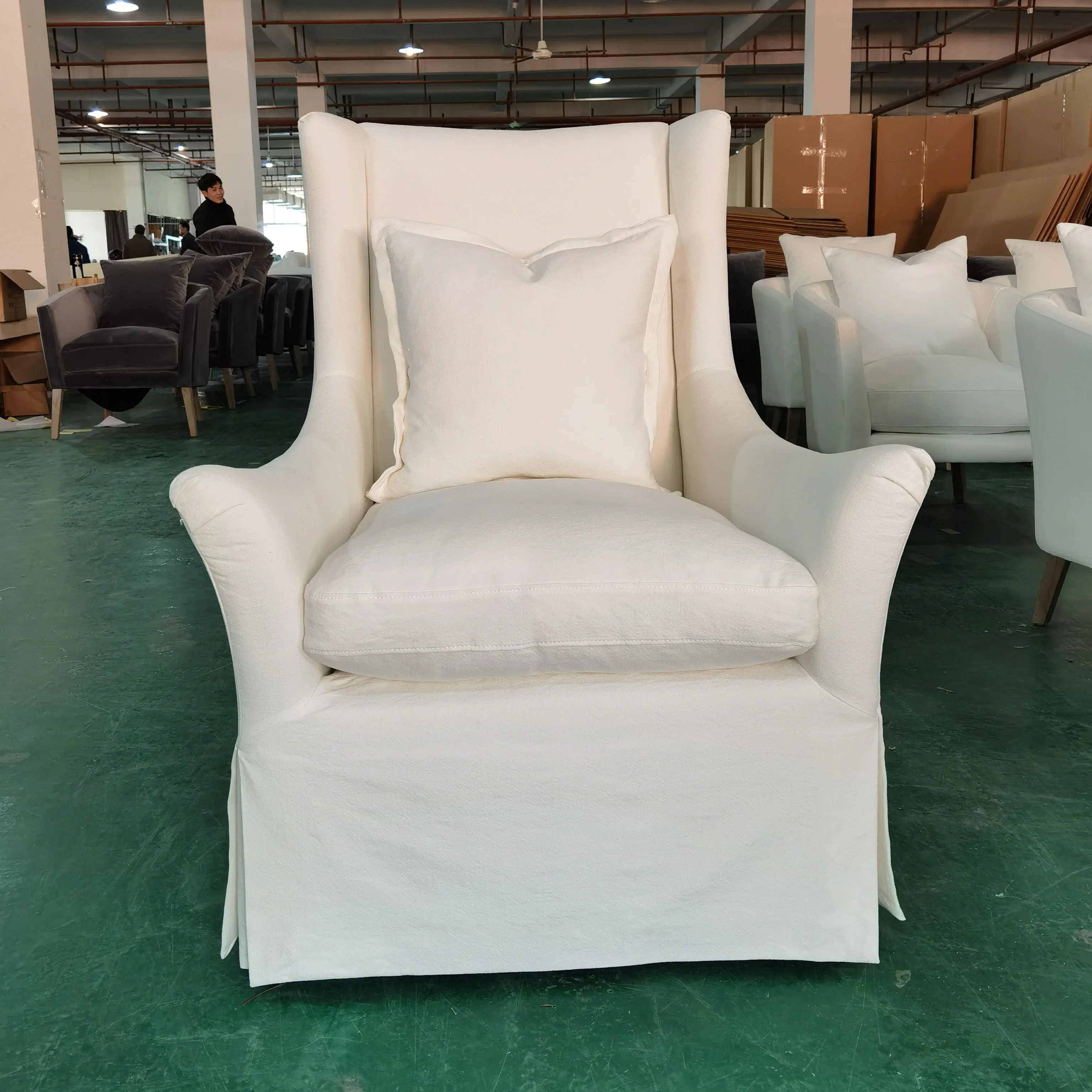 factory sells single seat White cotton fabric accent arm chair for the bedroom living room chair