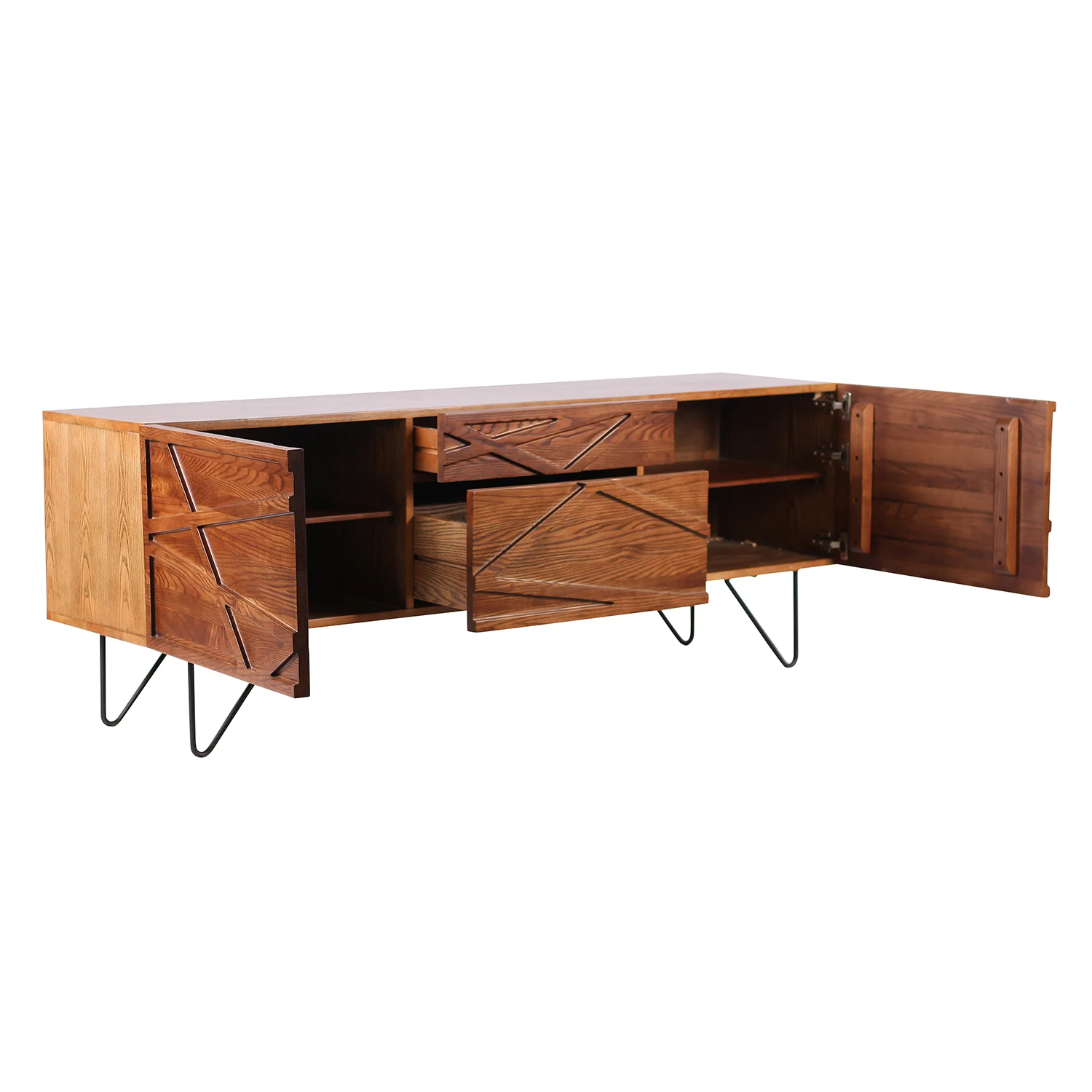 Nordic Simple Ash Solid Wood Low TV Cabinet Metal Legs Wooden Cabinet Design For Living Room