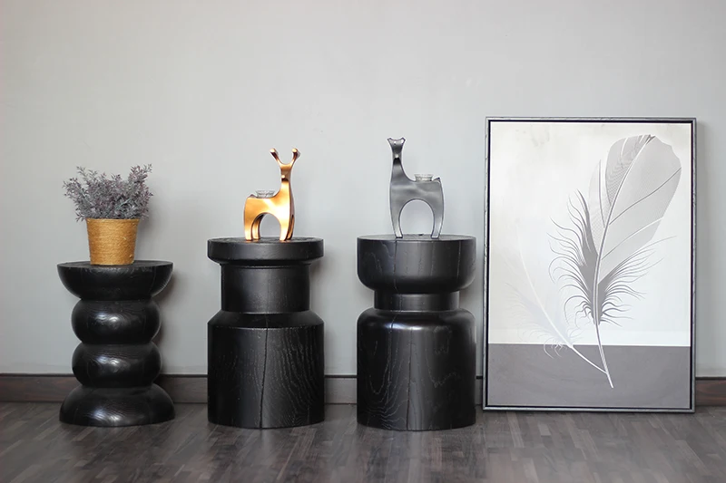Modern Living Room Furniture Ash Solid Wood Stool Creative Color Wood Small Round Stool Stump