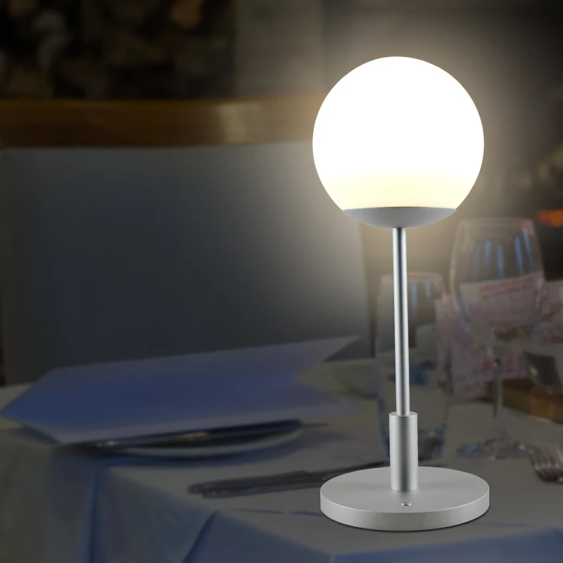 Modern rechargeable hotel bar ball head table light Nordic white round ball shade designer table lamp for living room
