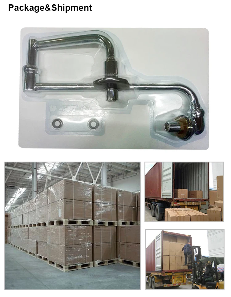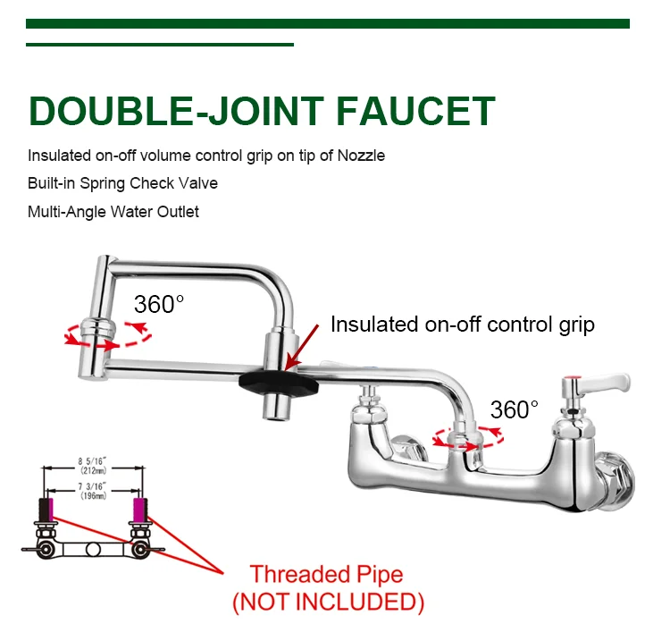 Double-Joint Faucet Wall Mount Double Handles Brass Kitchen Sink Pot Filler Faucet with Folding Nozzle