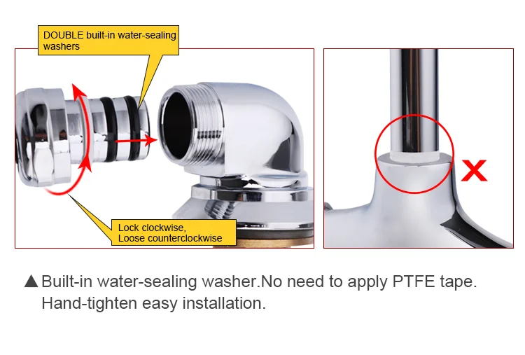 - Built-in water sealing washer , no need to apply PTFE tape.Easy Install