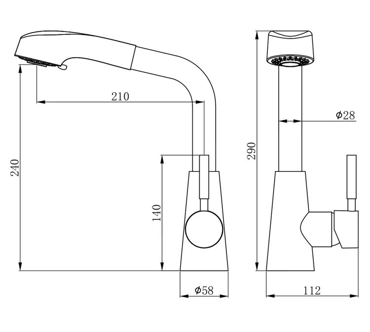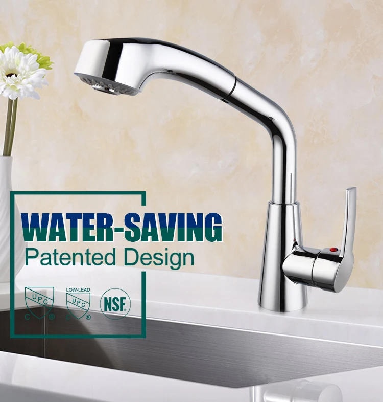 b/c: Pull-down spray head with two different Water-Flow Mode--STREAM & SHOWER SPRAY