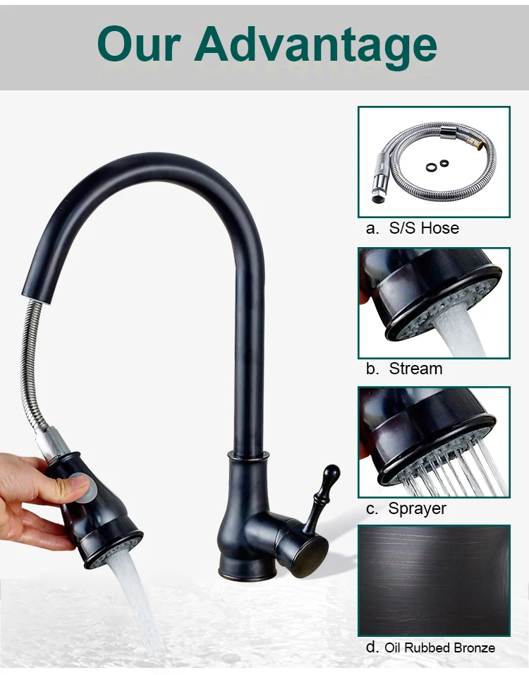 b/c: Pull-down spray head with two different Water-Flow Mode--STREAM & SHOWER SPRAY