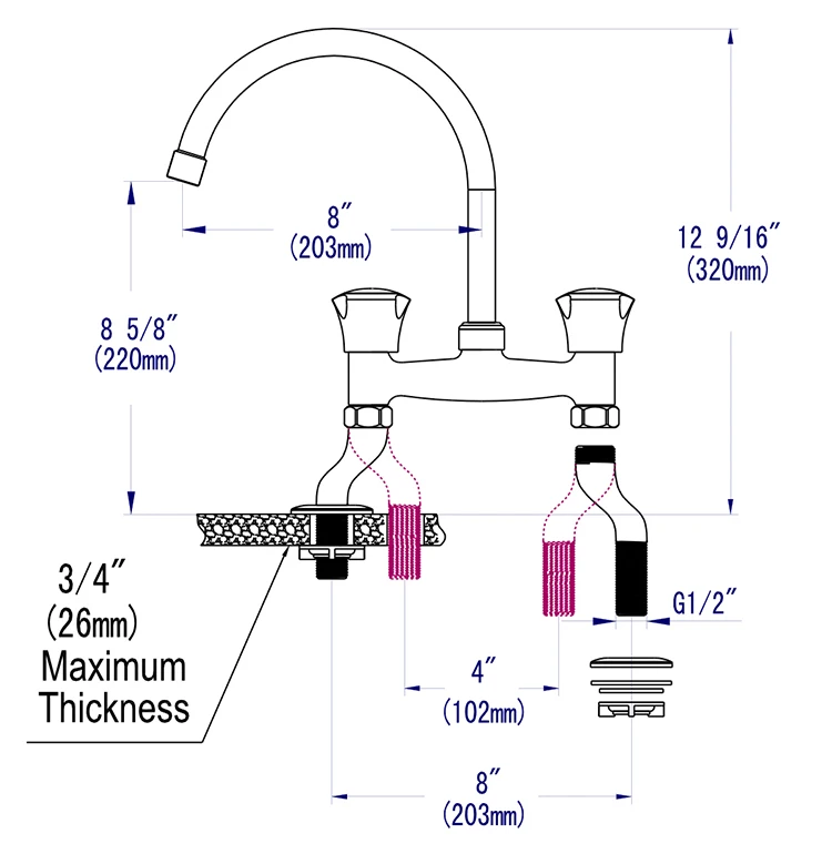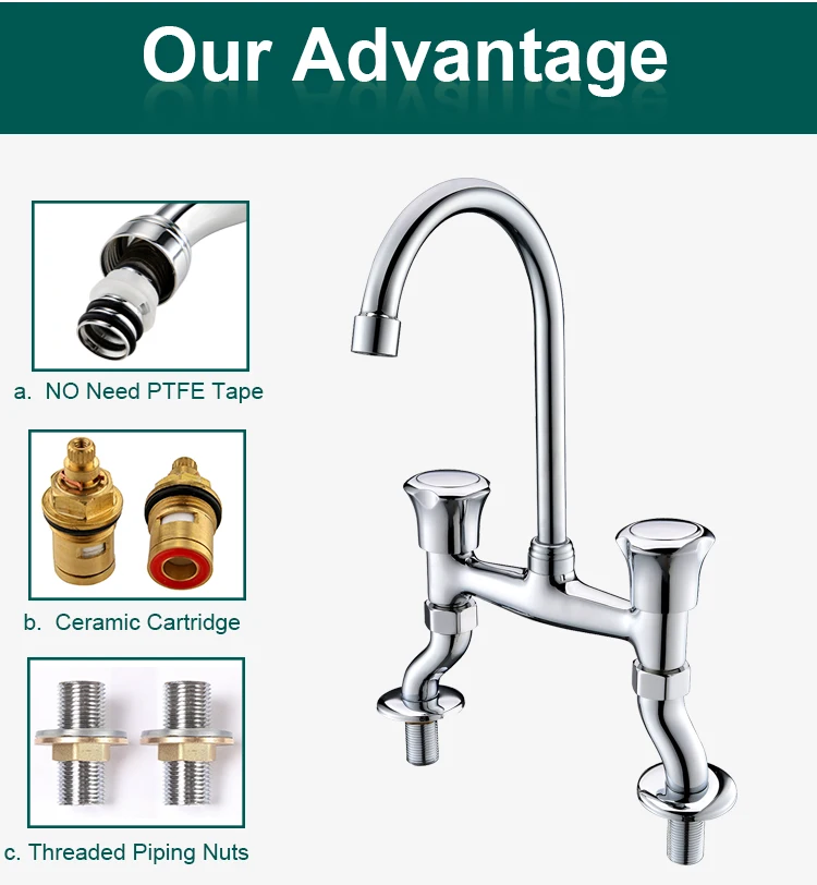 Solid brass distinctive construction, durable and safety; hot and cold water supply.