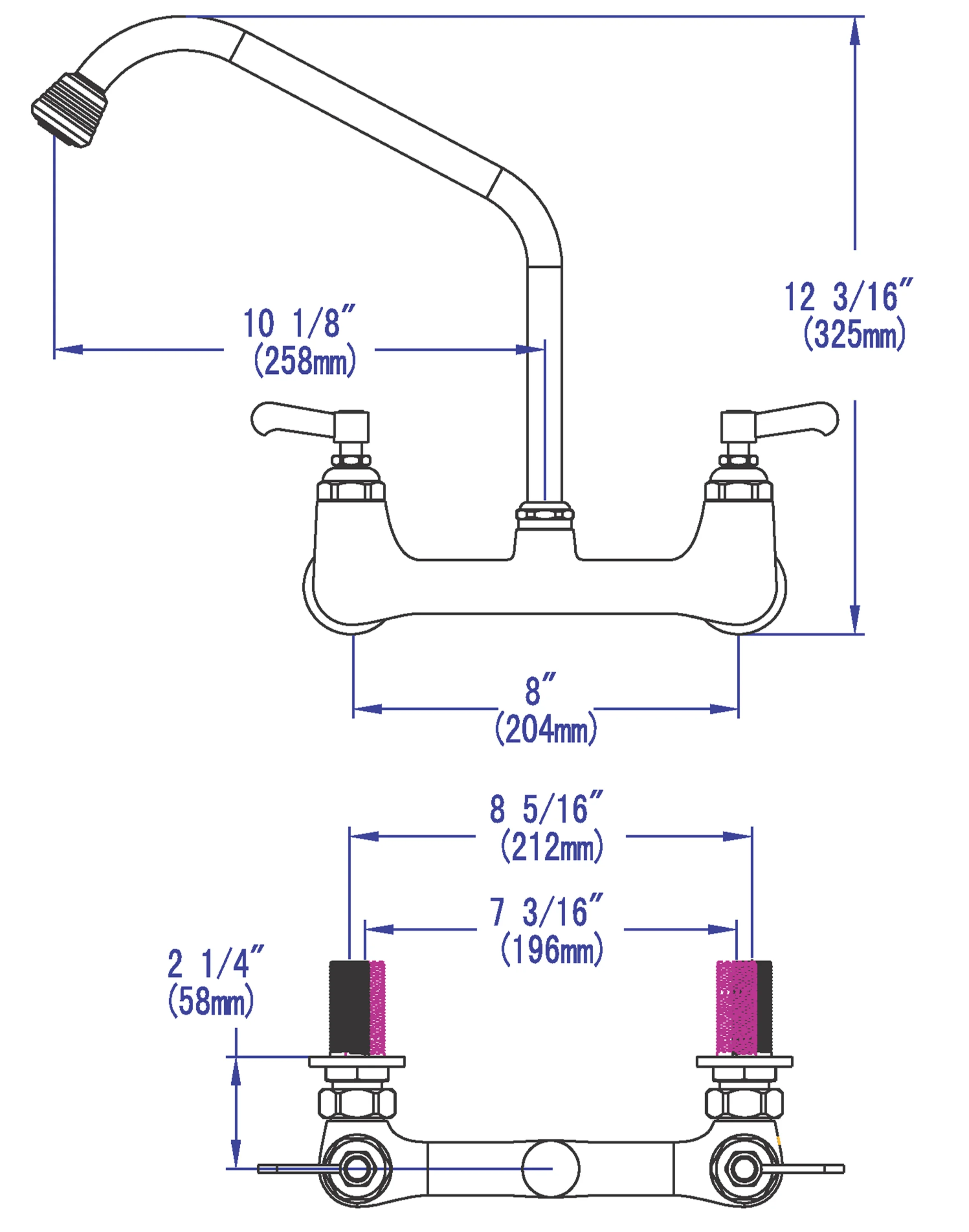 Solid brass distinctive construction, durable and safety; hot and cold water supply.