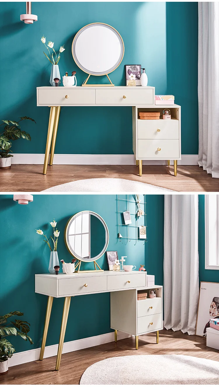 Modern Nordic Simple Bedroom Furniture Storage Cabinet Solid Wood Foot Makeup Table Dresser