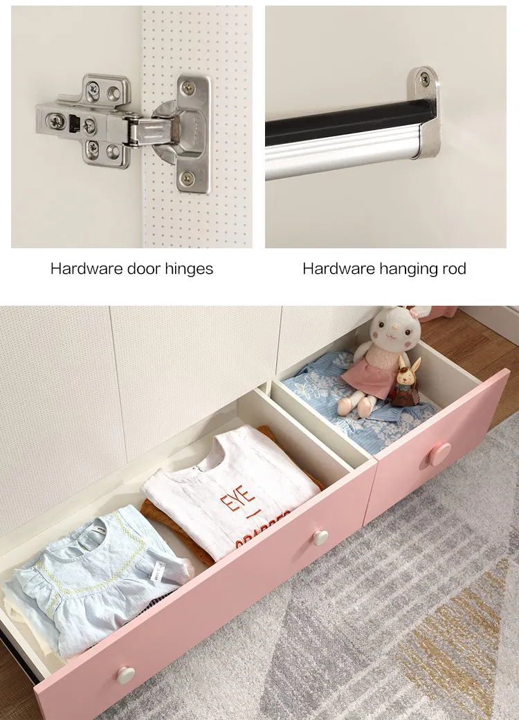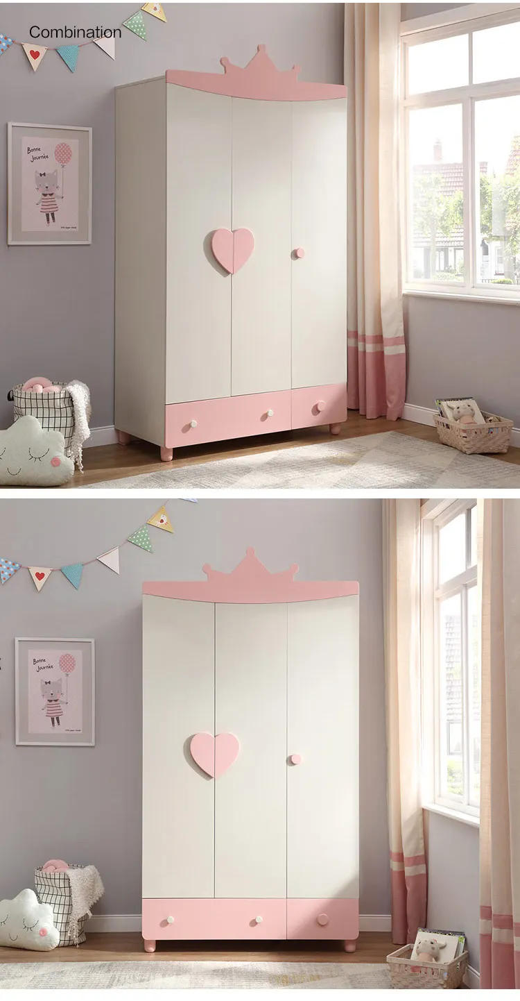 Home Movable Housing Furniture & Household Appliances Bedroom Furniture Movable Closet Foshan Chenglin Furniture Co., Ltd. Linsy 3 Door Solid Wood Kid Room Girls Baby Portable Wardrobe Organizer Pink Wooden Kids Clothes Cabinet Storage EA1D