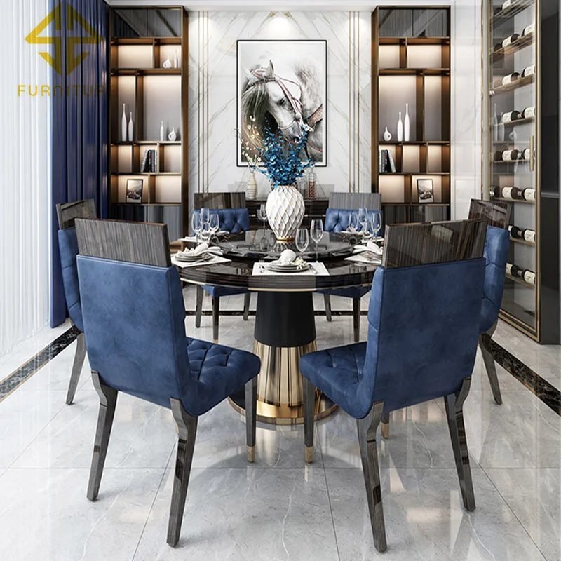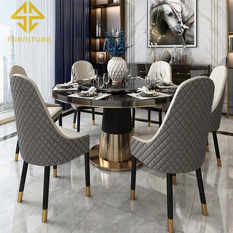 Nordic luxury designs round marble dining table sets for home furniture
