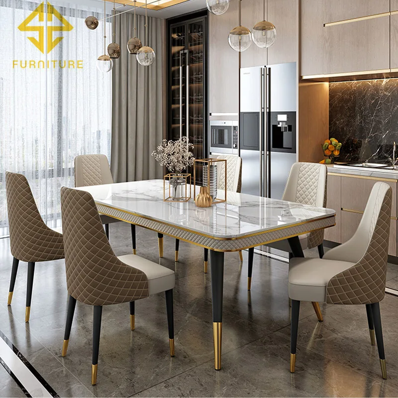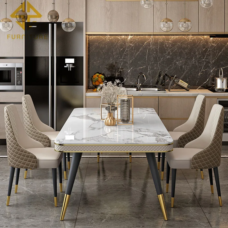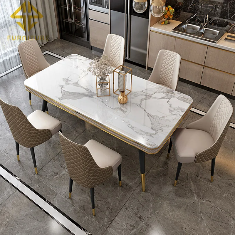 Home Movable Housing Furniture & Household Appliances Dining Room Furniture Dining Room Sets Foshan Yi Jin Furniture Co., Ltd. Modern 6 chair white marble dining table sets for home furniture