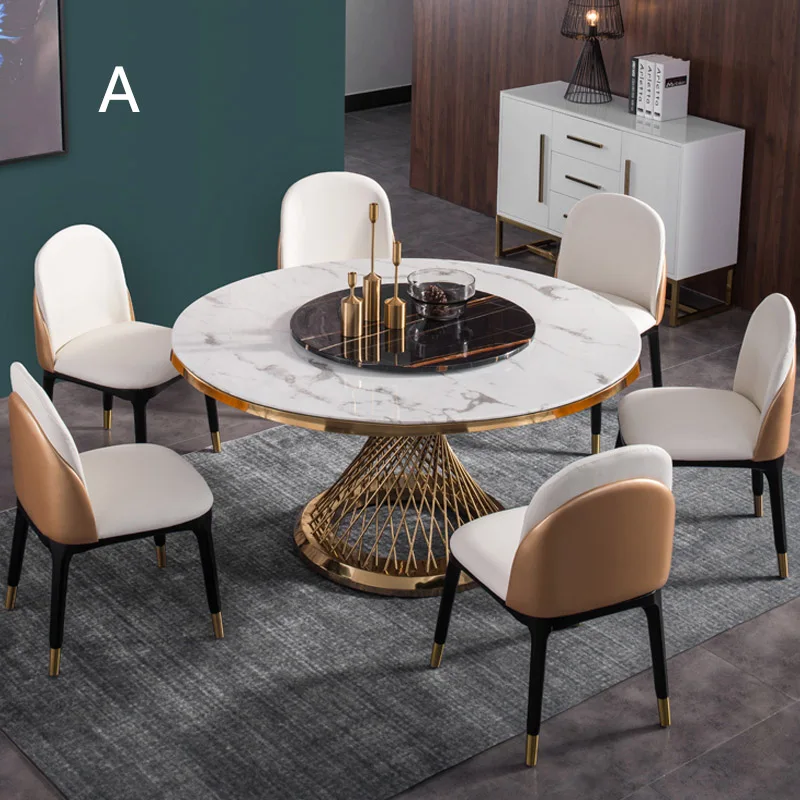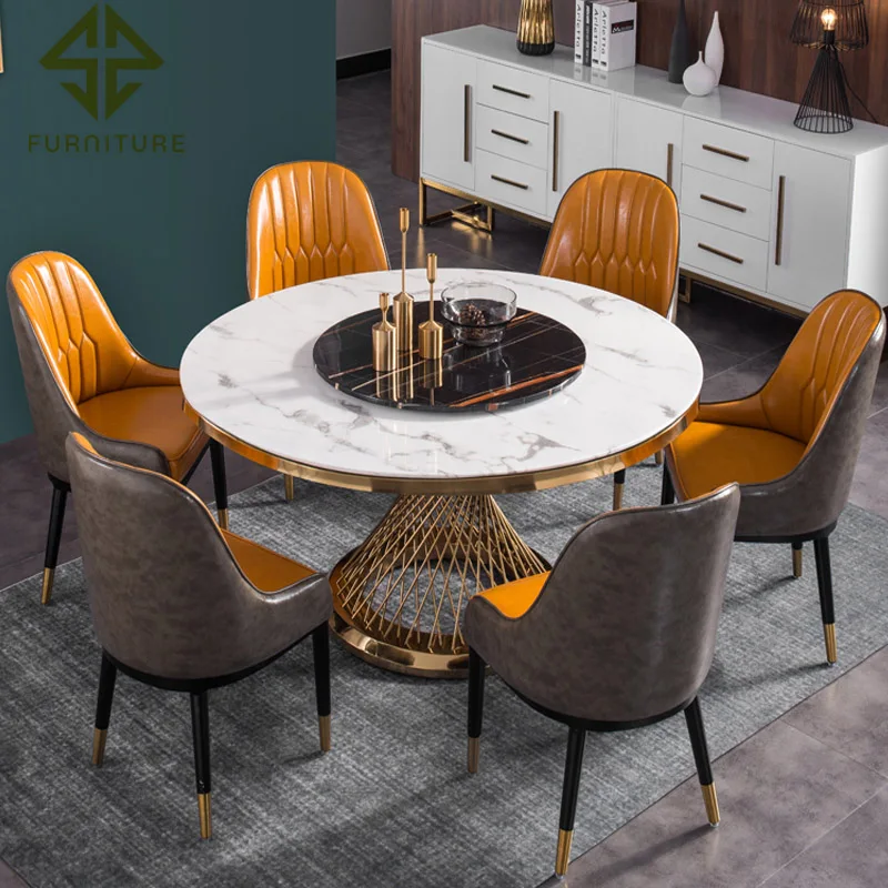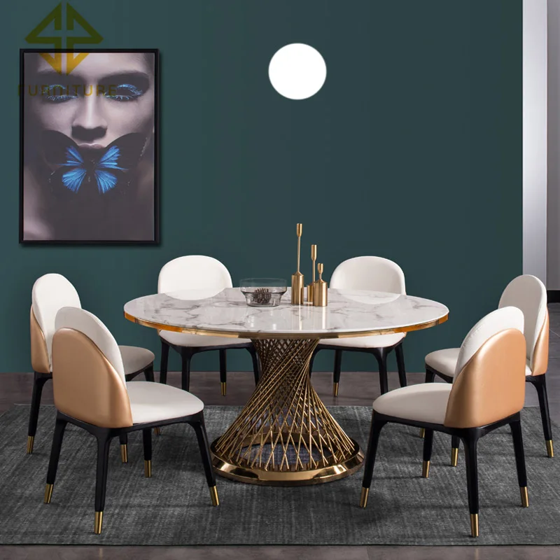 Modern luxury kitchen furniture gold frame marble top round dining table sets