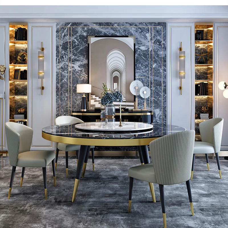 Home Movable Housing Furniture & Household Appliances Dining Room Furniture Dining Room Sets Foshan Yi Jin Furniture Co., Ltd. Italian design style modern round marble dining table whith chairs