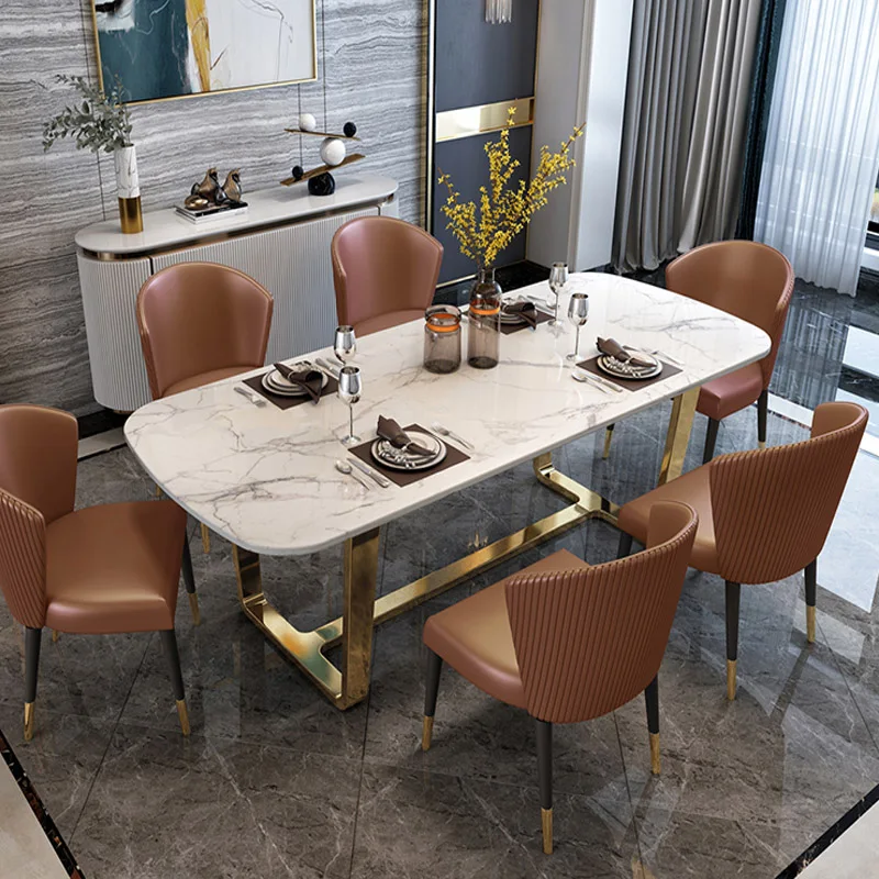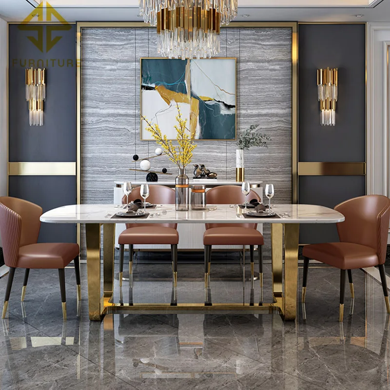 Modern luxury home furniture marble dining room table set with chairs 6 seater