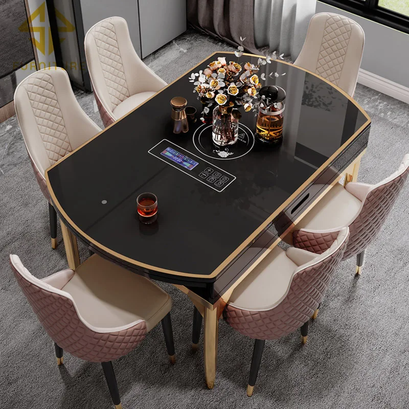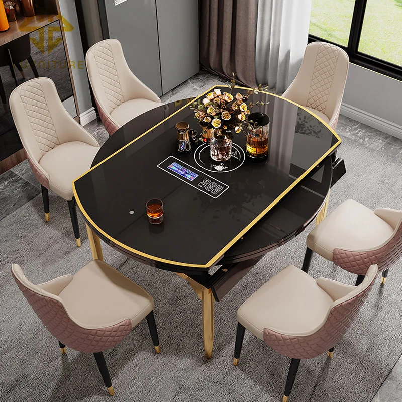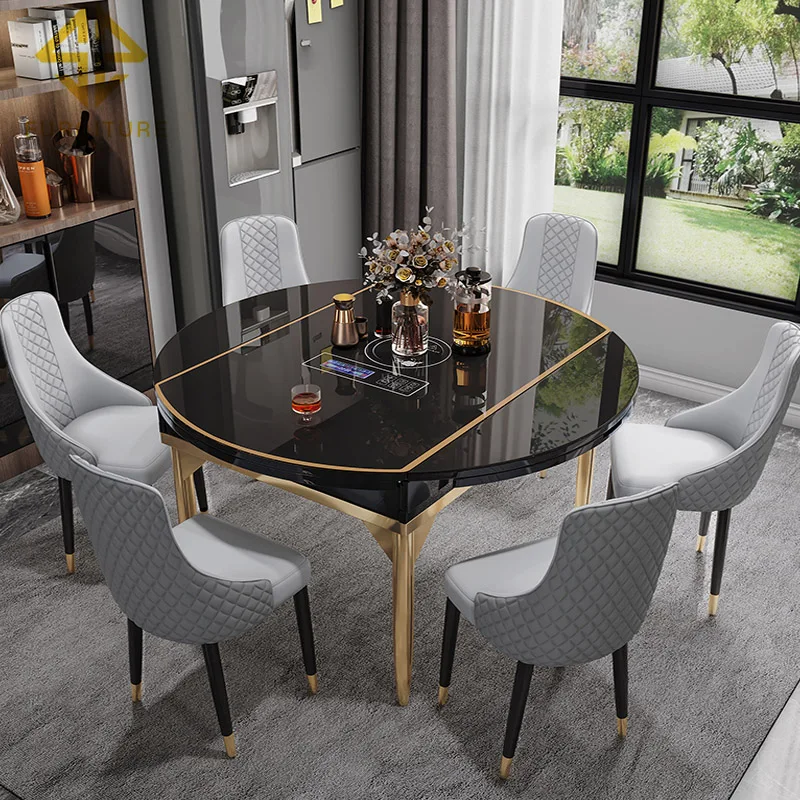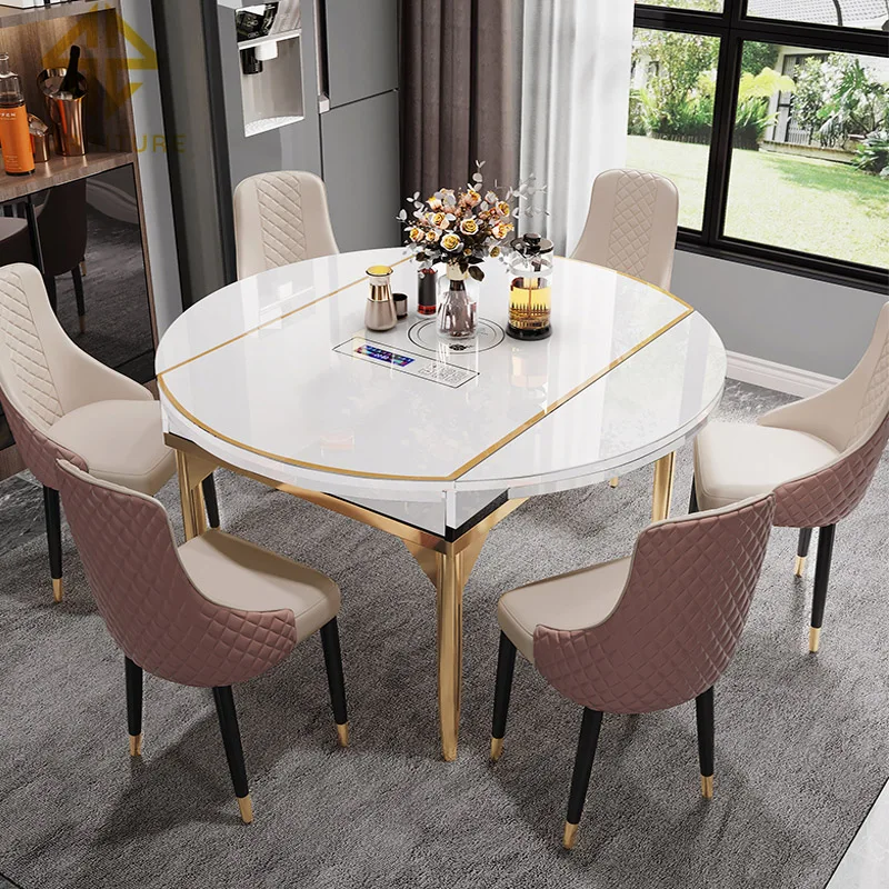 Home Movable Housing Furniture & Household Appliances Dining Room Furniture Dining Room Sets Foshan Yi Jin Furniture Co., Ltd. Modern luxury smart restaurant furniture extendable round marble dining table set