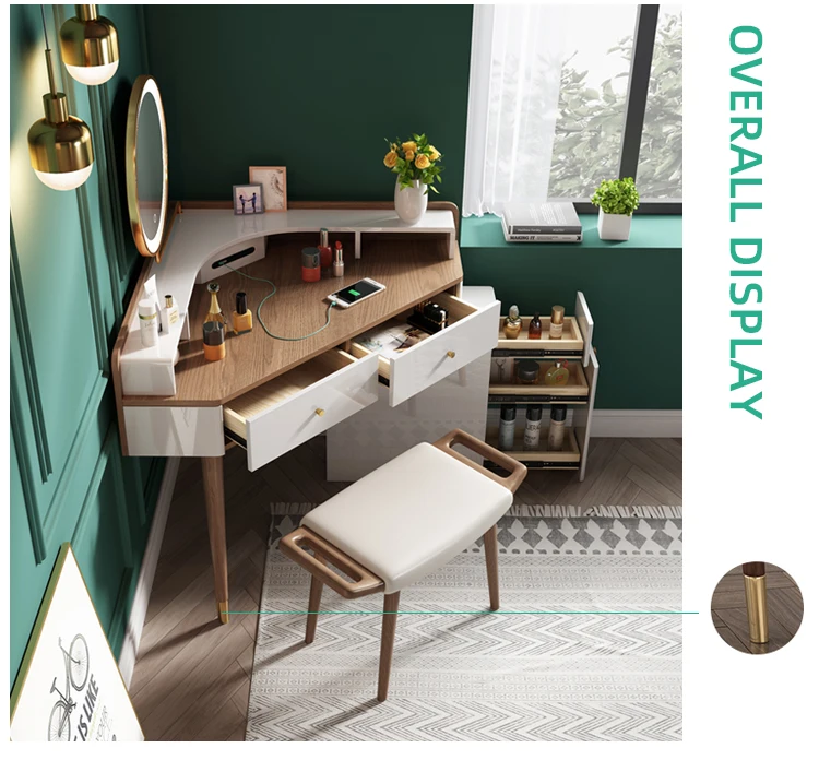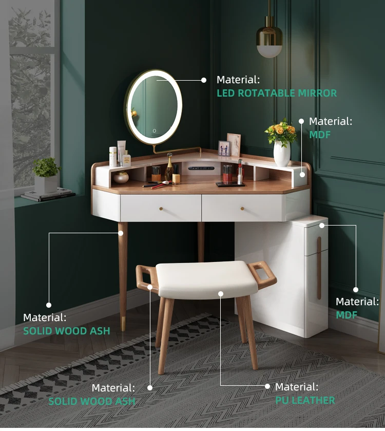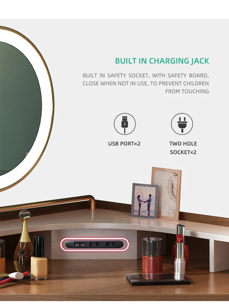 Modern Kommode Makeup Dressing desk Comoda Vanity Commode maquillaje bedroom wood Table Set Luxury LED Light Mirror Dressers