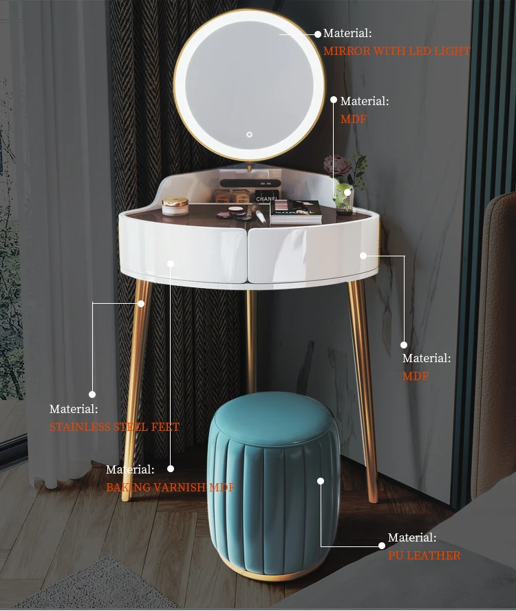 Dressing table modern dressing table LED mirror storage vanity wood cabinet bedroom furniture corner dressers