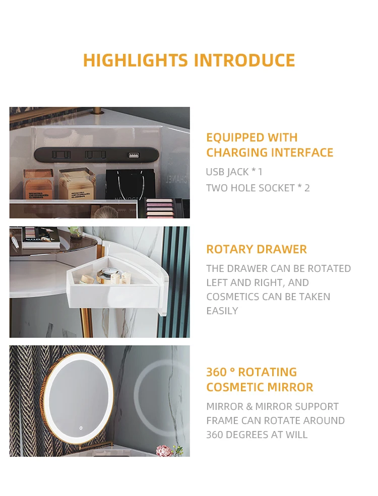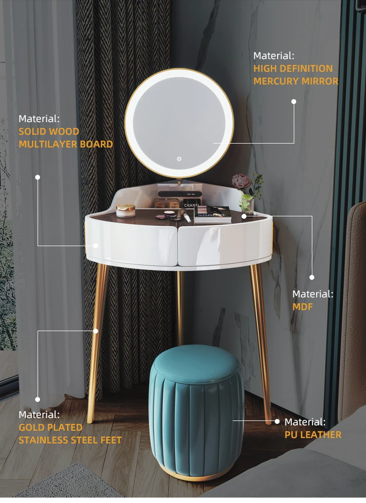 Bedroom modern contracted light luxury dressing maquillaje table makeup vanity white dresser with mirror