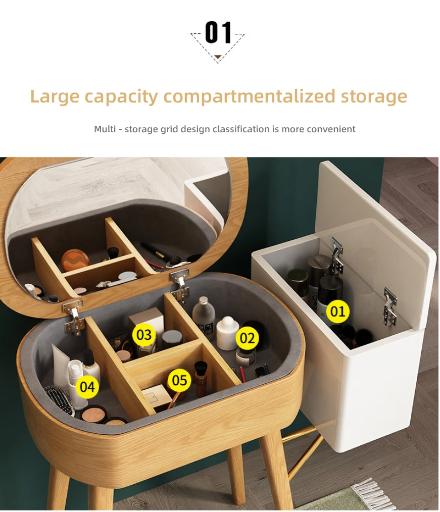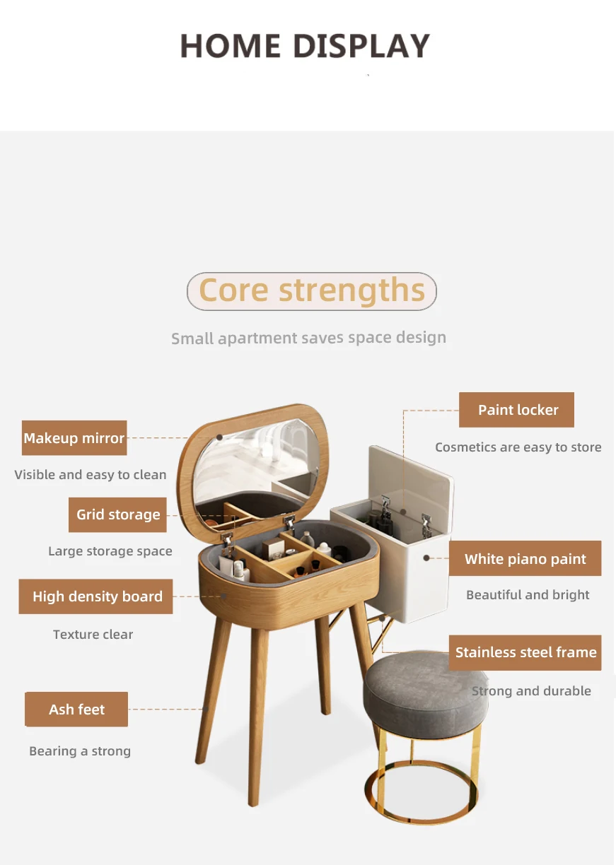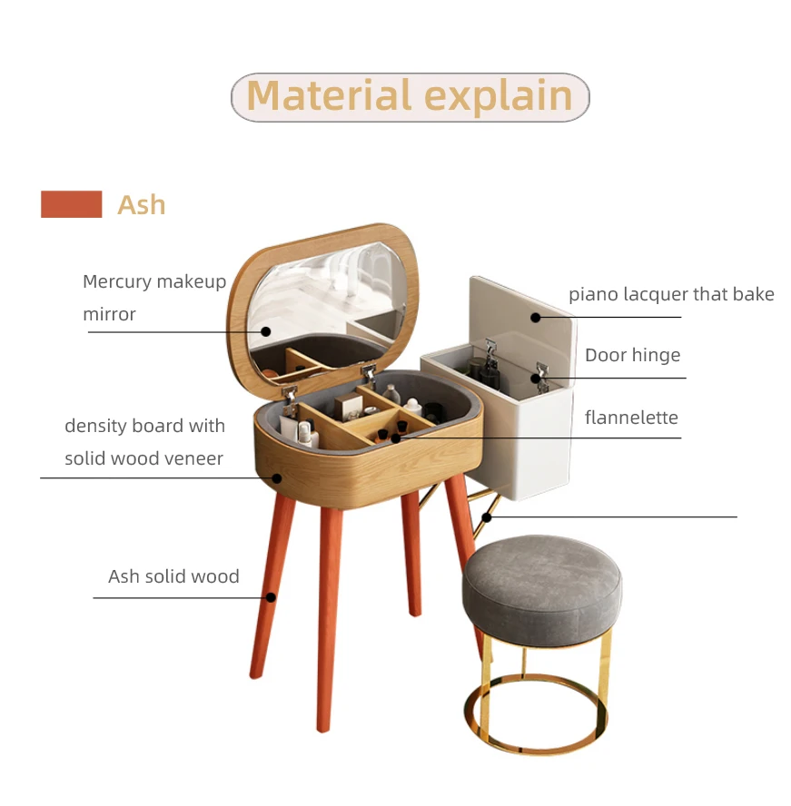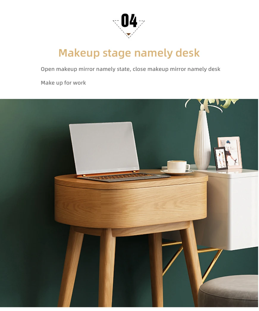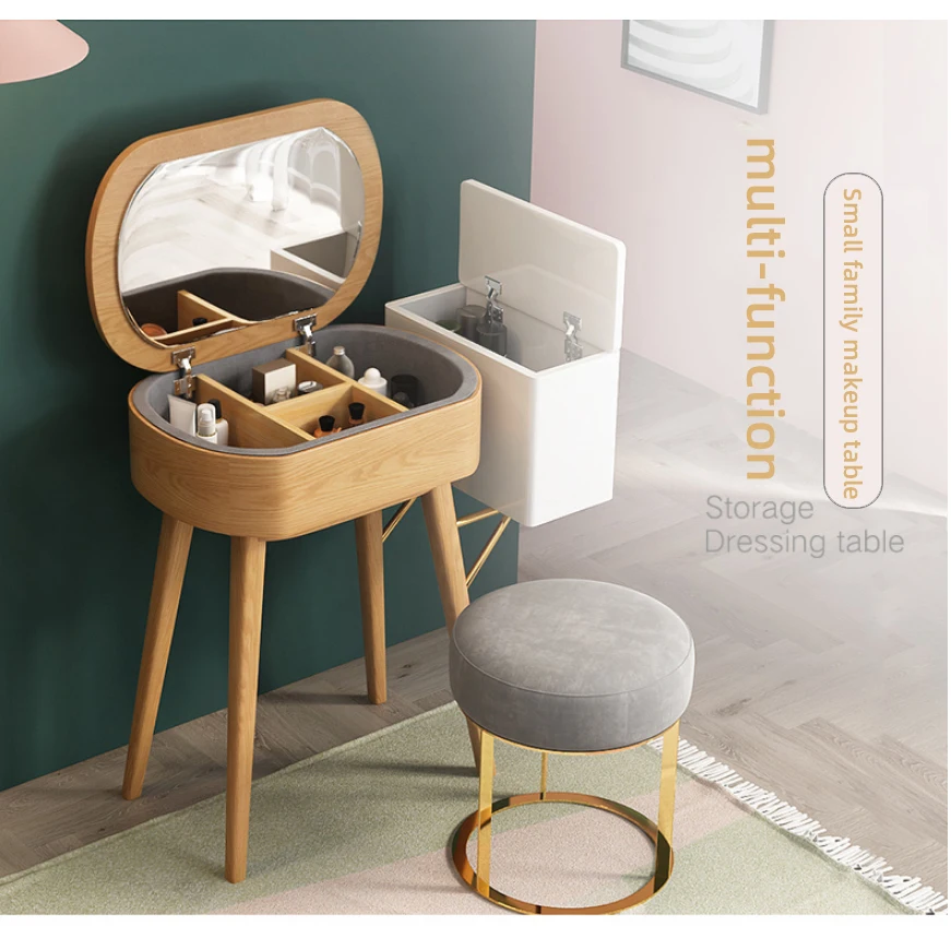 Nordic small dresser bedroom simple solid wood storage makeup table mini flip makeup table