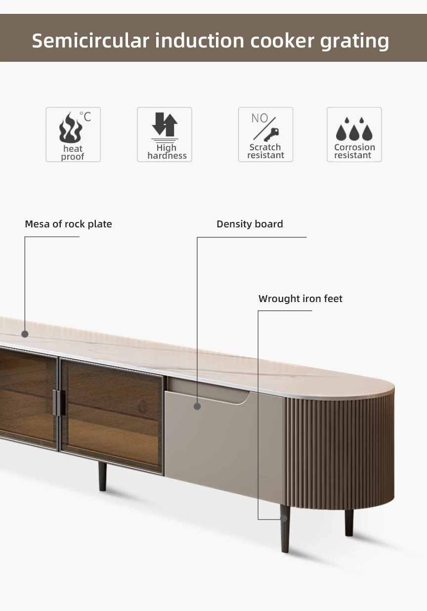Modern Design living room furniture luxury Wrought Iron wooden Rock Panel Storage TV Cabinet console