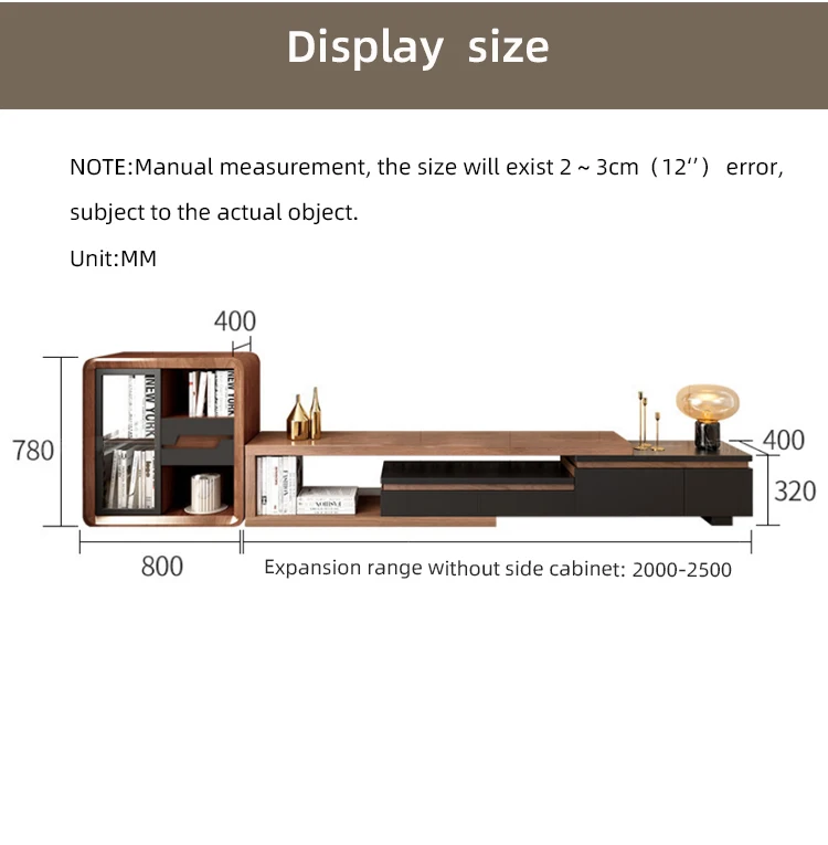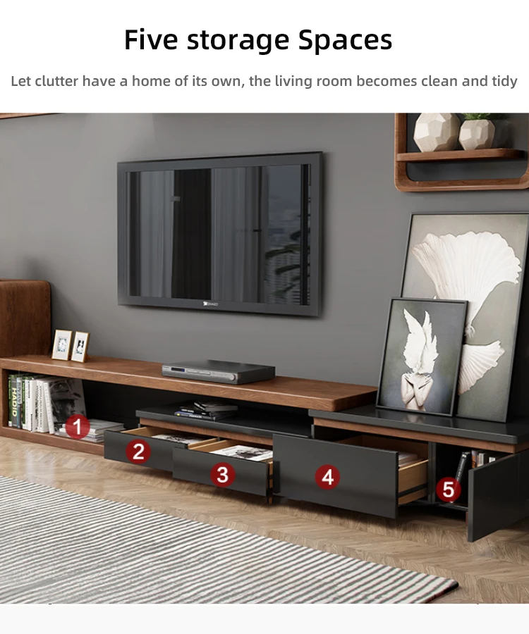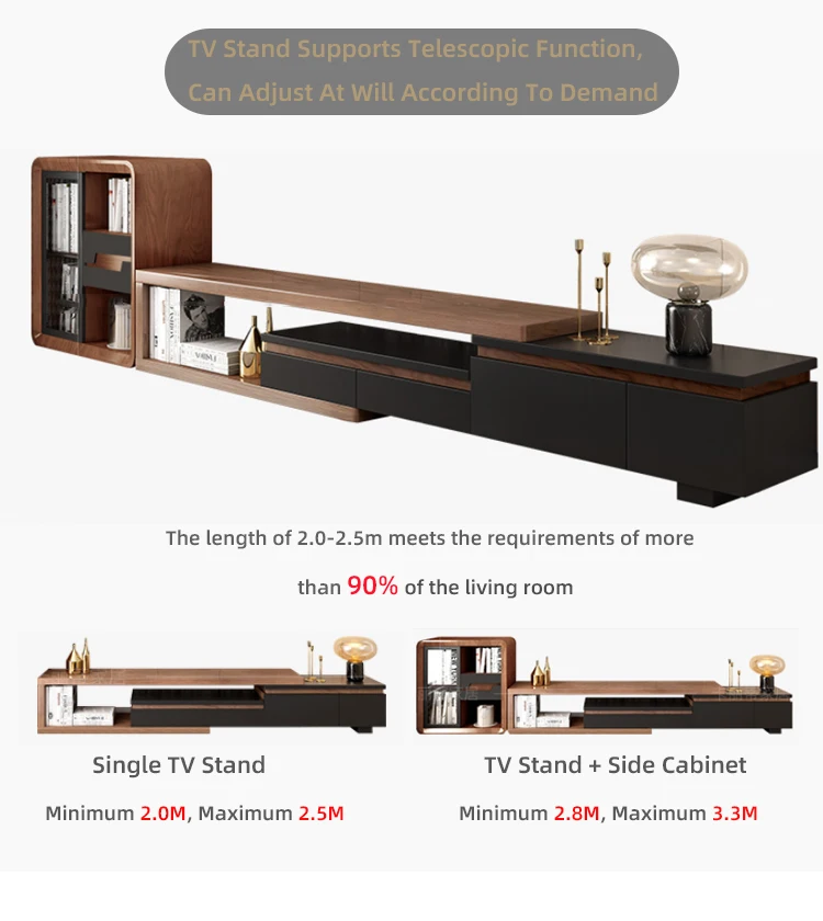 Modern Iron Frame Walnut Color Retractable Multi-Functional Storage TV Cabinet With Drawers For Storage TV Stand