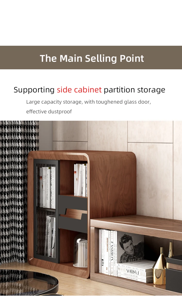 Home Movable Housing Furniture & Household Appliances Living Room Furniture TV Stand Foshan Qiaotai Furniture Products Co., Ltd. Modern Iron Frame Walnut Color Retractable Multi-Functional Storage TV Cabinet With Drawers For Storage TV Stand