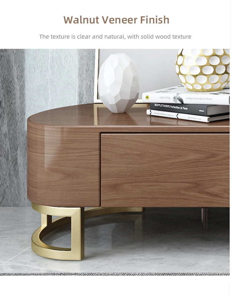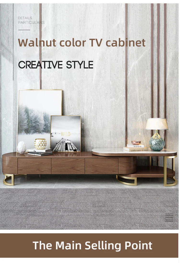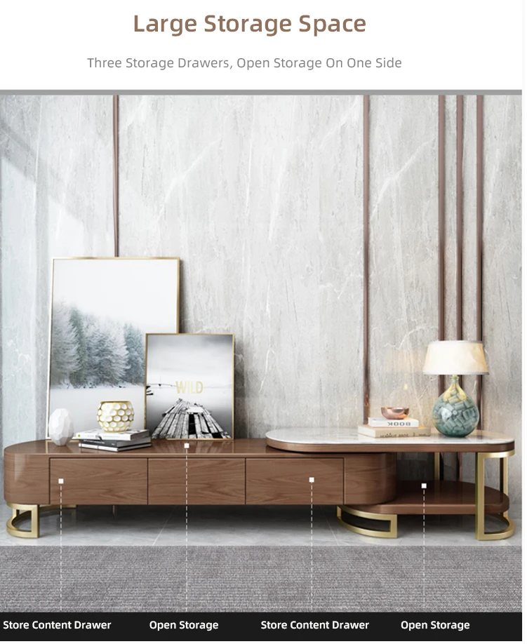 Modern Wooden Walnut Color Storage TV Cabinet Stand Multifunctional Extendable Slab TV Console Stand