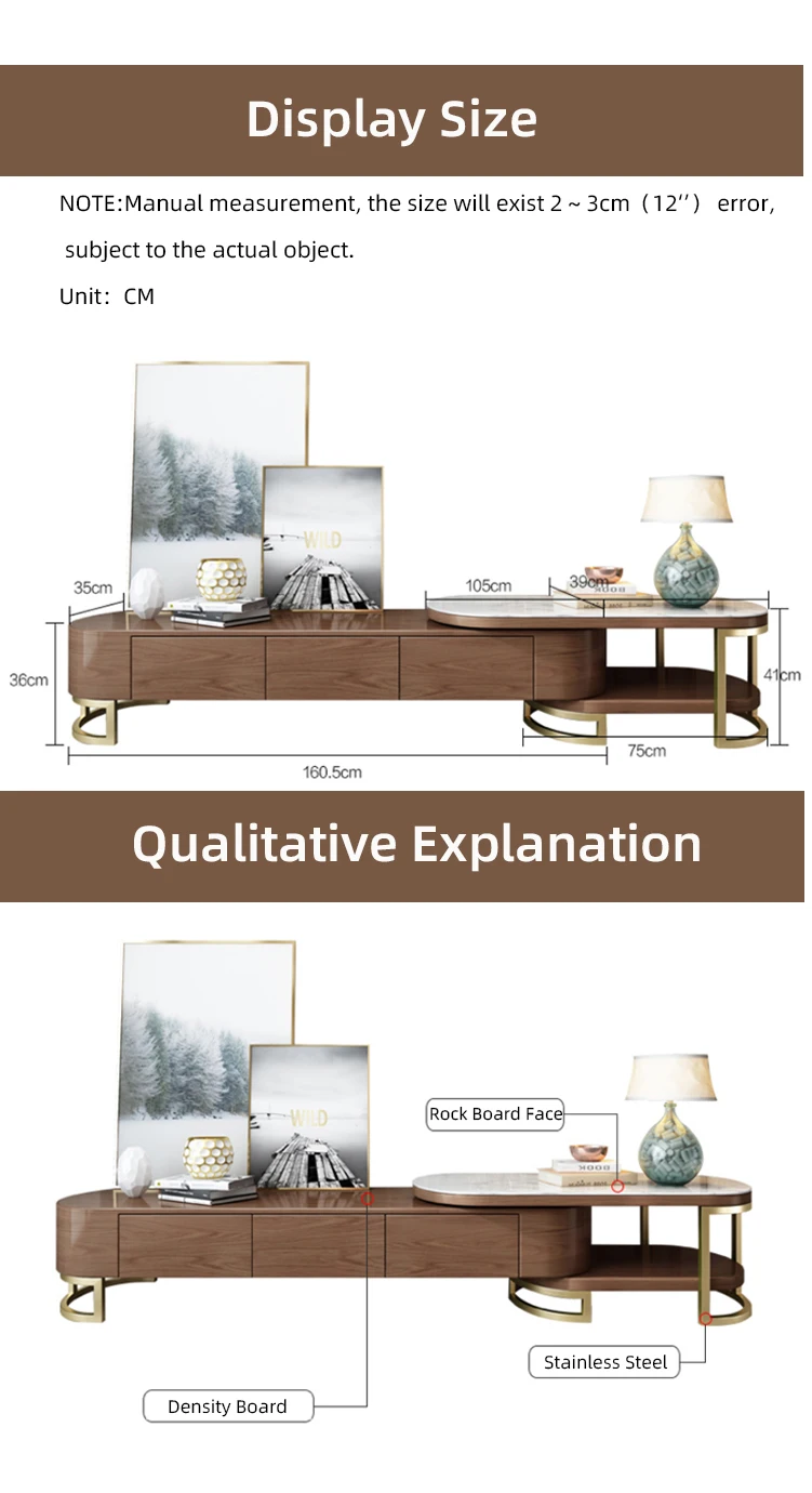 Home Movable Housing Furniture & Household Appliances Living Room Furniture TV Stand Foshan Qiaotai Furniture Products Co., Ltd. Modern Wooden Walnut Color Storage TV Cabinet Stand Multifunctional Extendable Slab TV Console Stand