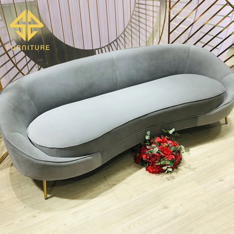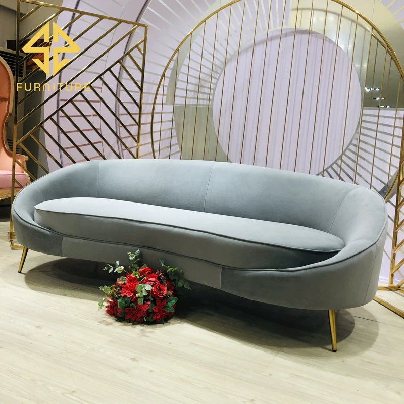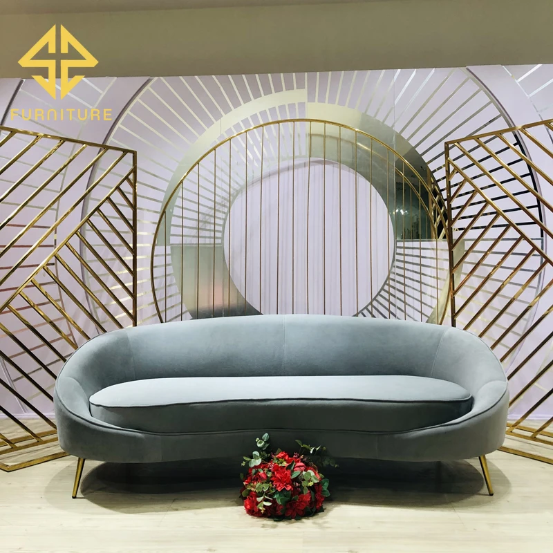 SAWA new gray velvet 3-seater metal sofa throne