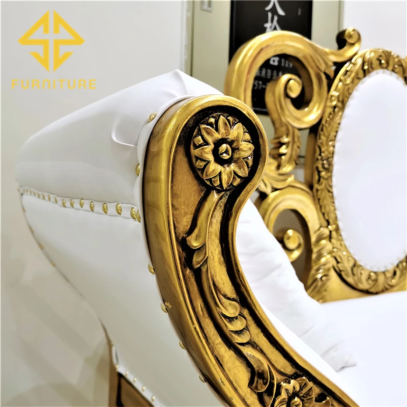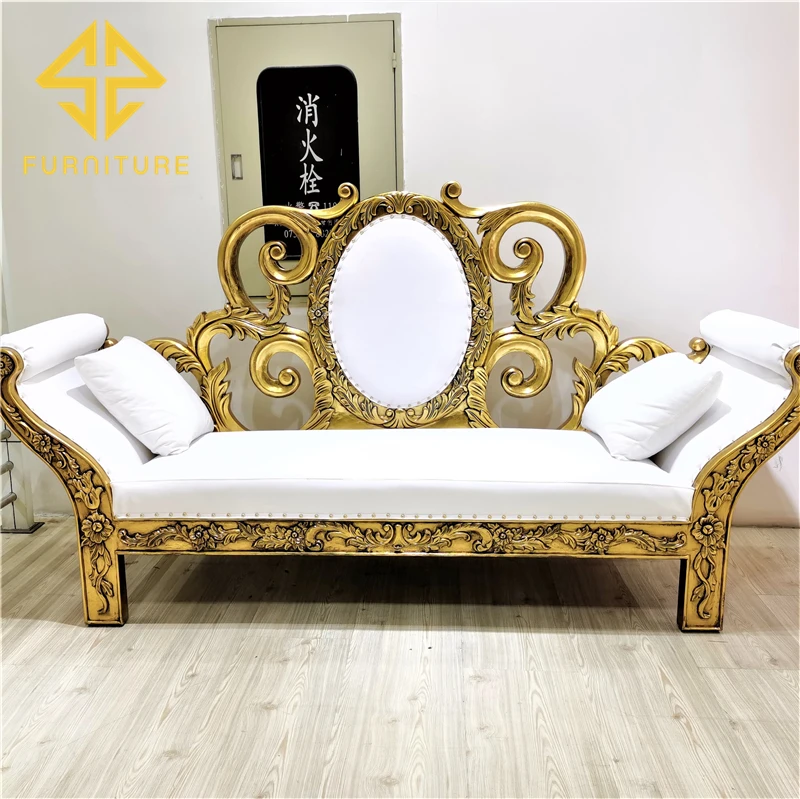 SAWA luxury solid wood frame gold wedding king throne sofa for sale