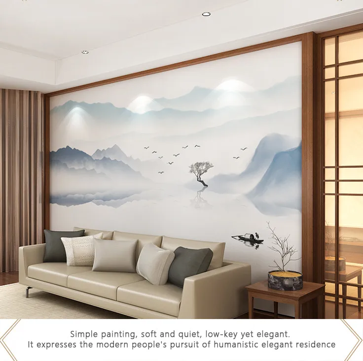 Home Stone,Tiles,Flooring & Walls Material Interior Wall Material Wallpaper Anhui Modenisite Soft Decoration Design Co., Ltd. Modern Chinese Zen landscape ink style picture wallpaper Wall background