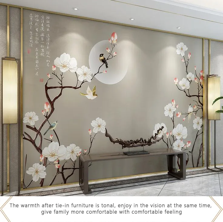 Home Stone,Tiles,Flooring & Walls Material Interior Wall Material Wallpaper Anhui Modenisite Soft Decoration Design Co., Ltd. Modern Chinese style Elegant flower and bird picture wallpaper Wall background