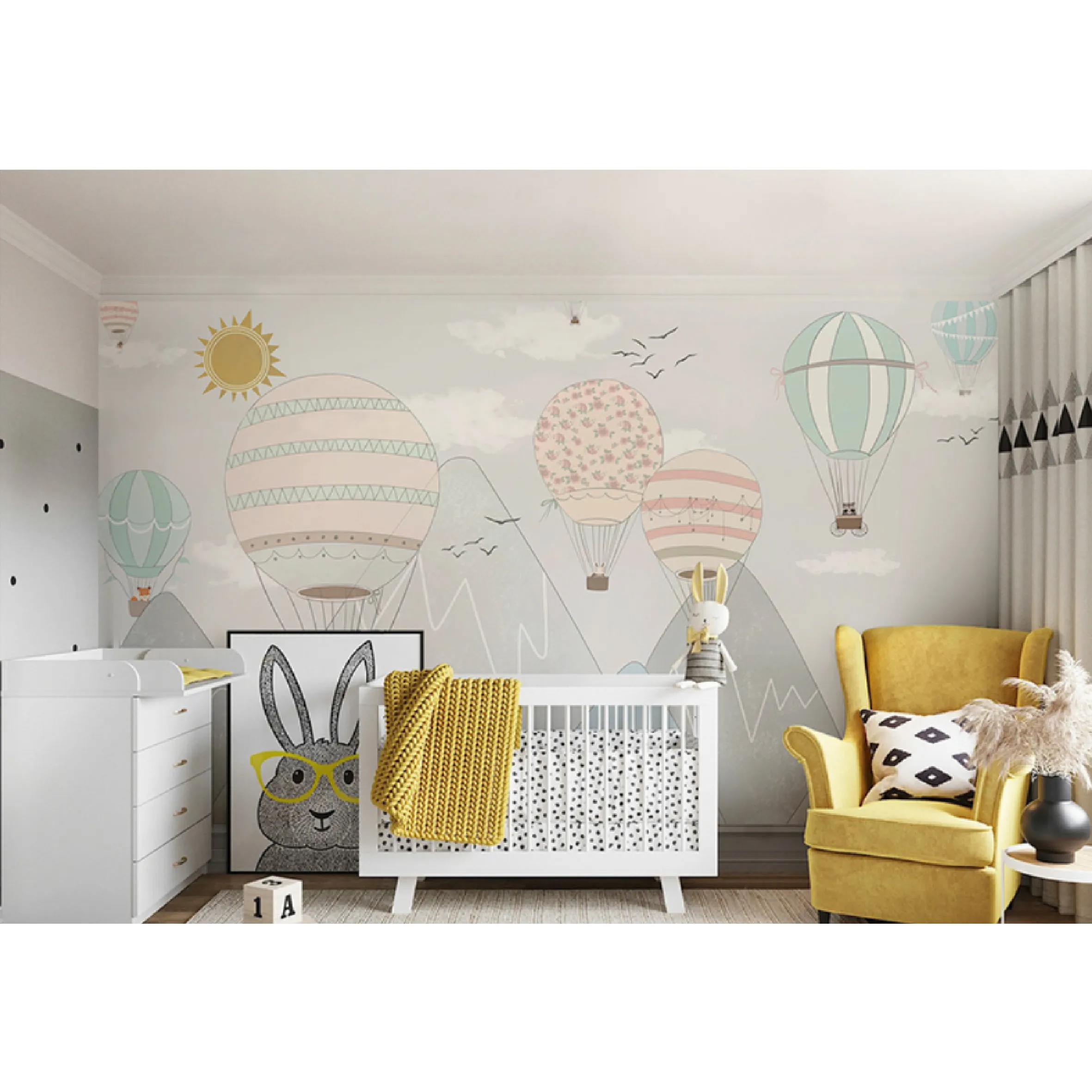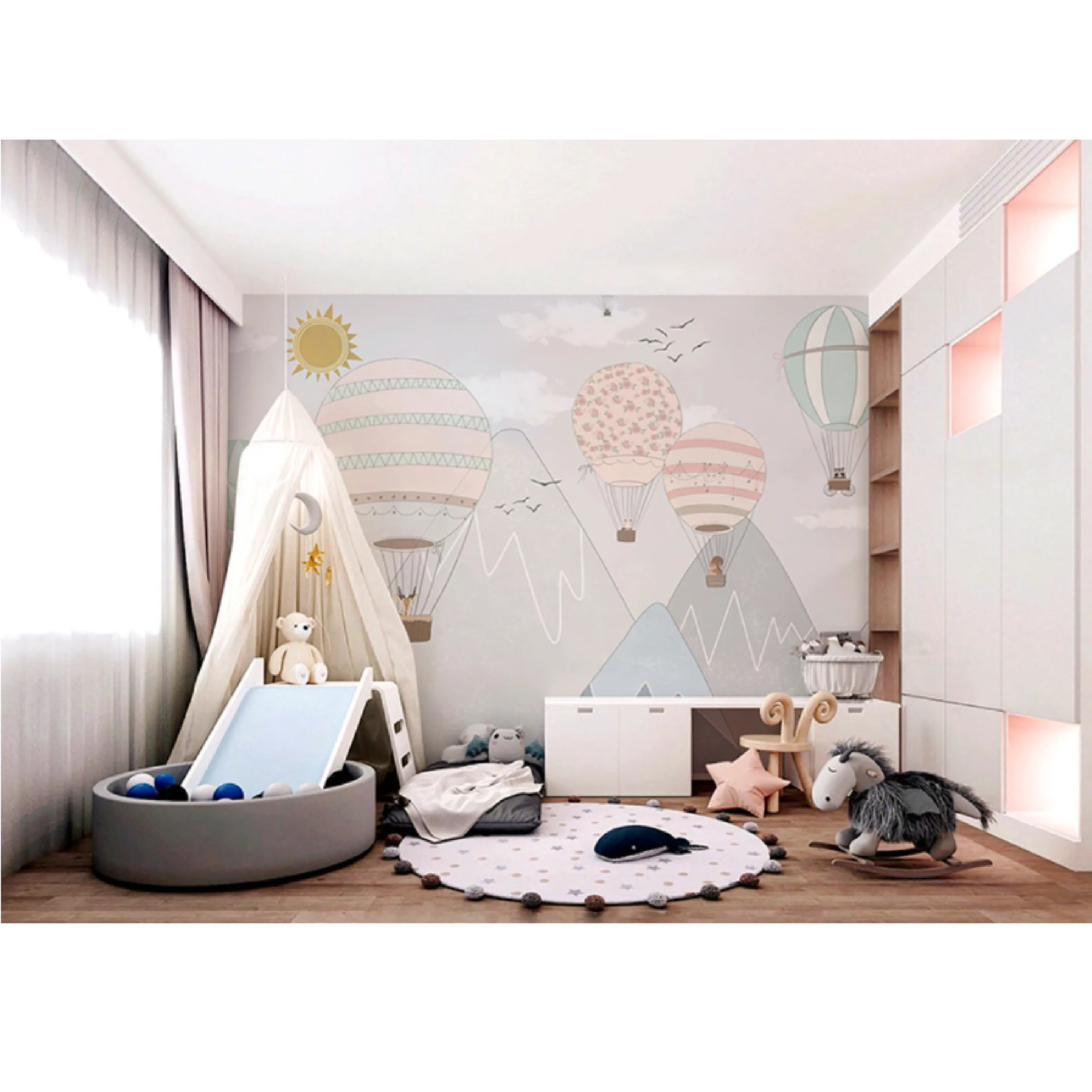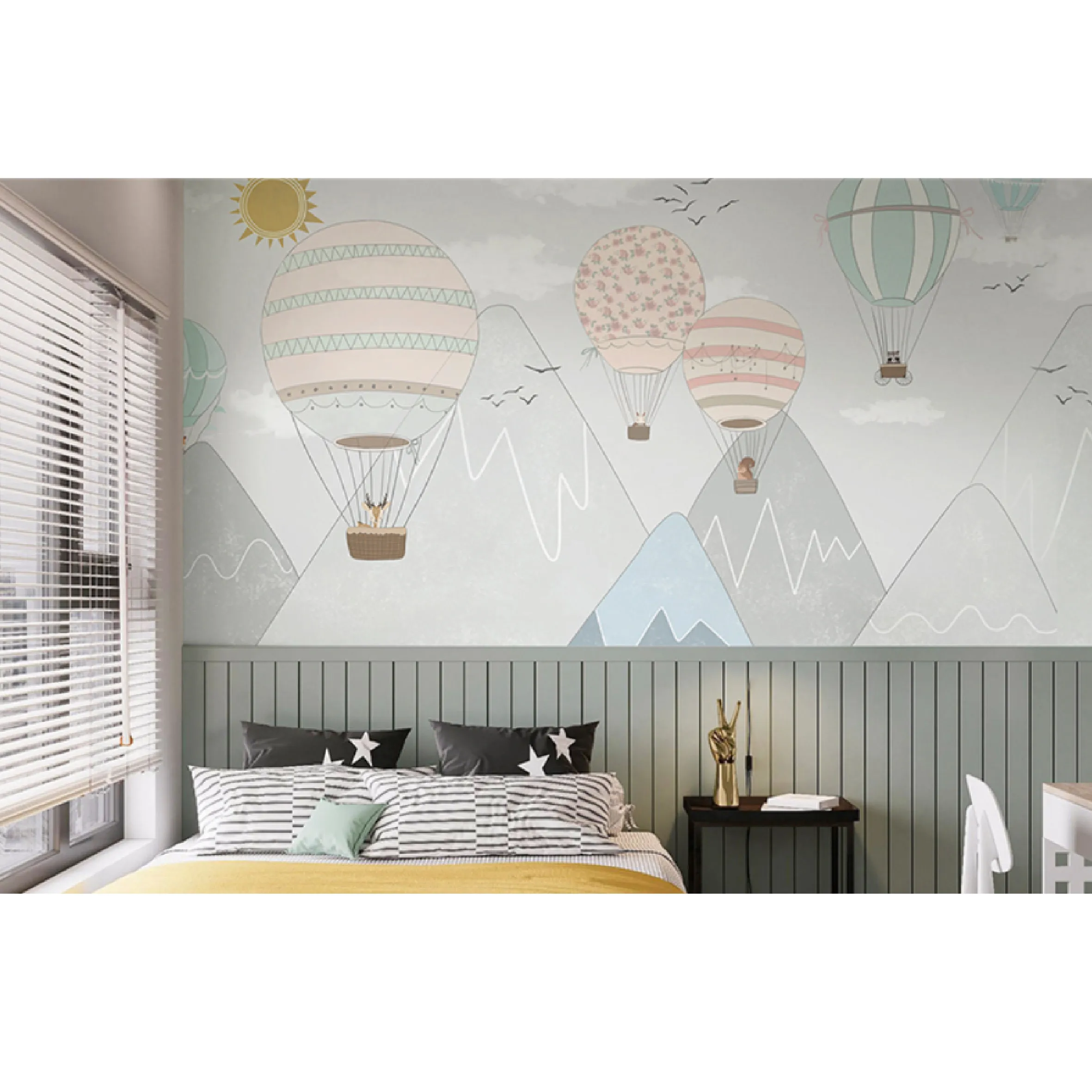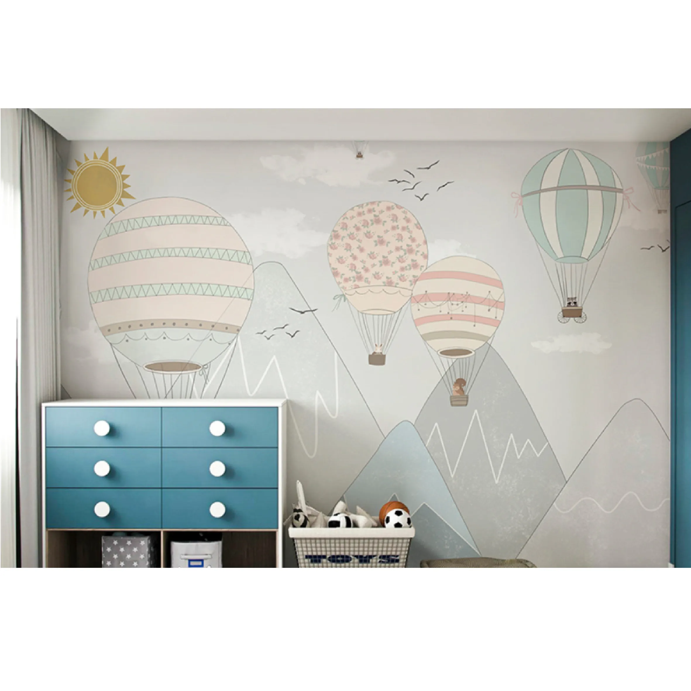 Home Stone,Tiles,Flooring & Walls Material Interior Wall Material Wallpaper Anhui Modenisite Soft Decoration Design Co., Ltd. Factory customized children's room colorful hot air balloon background wallpaper