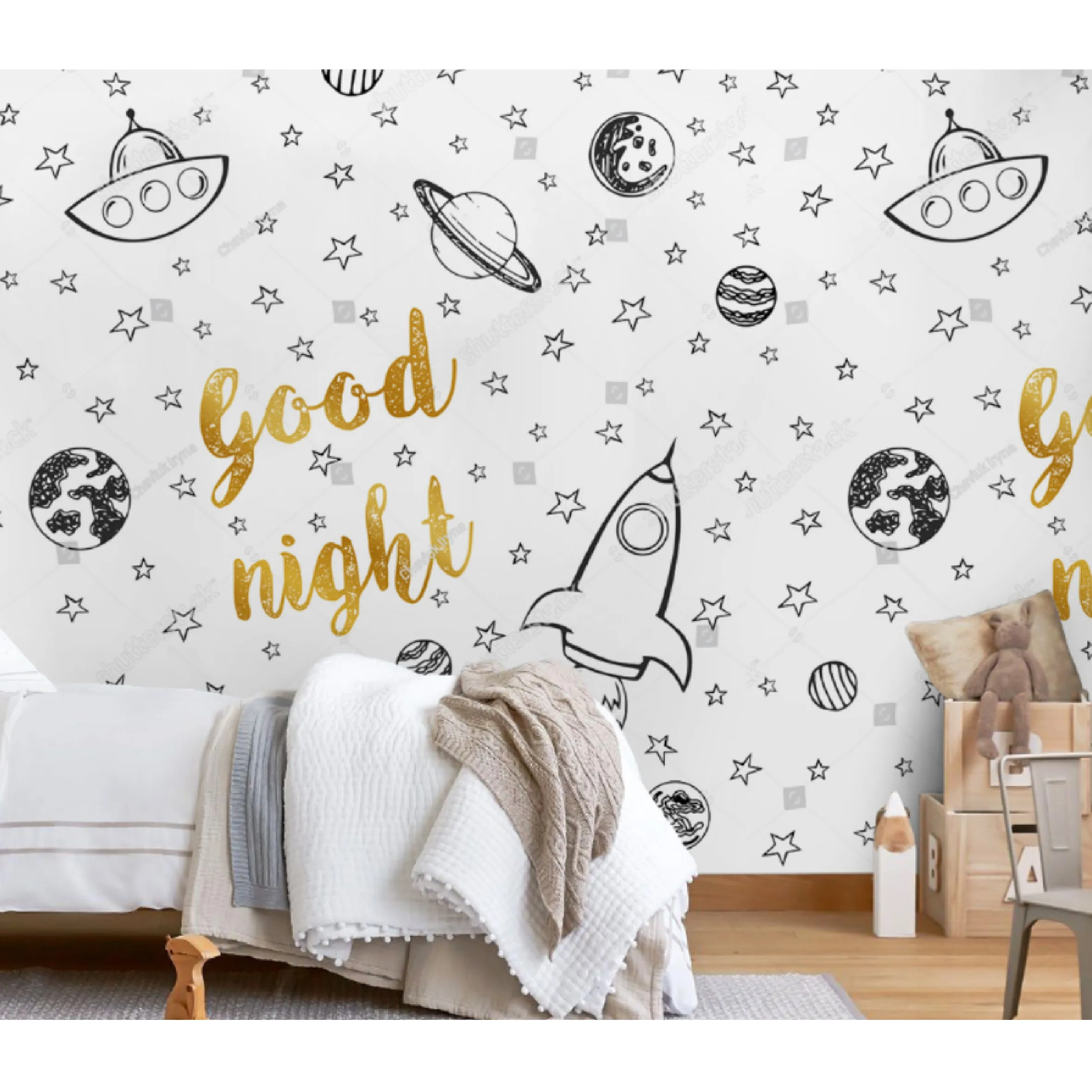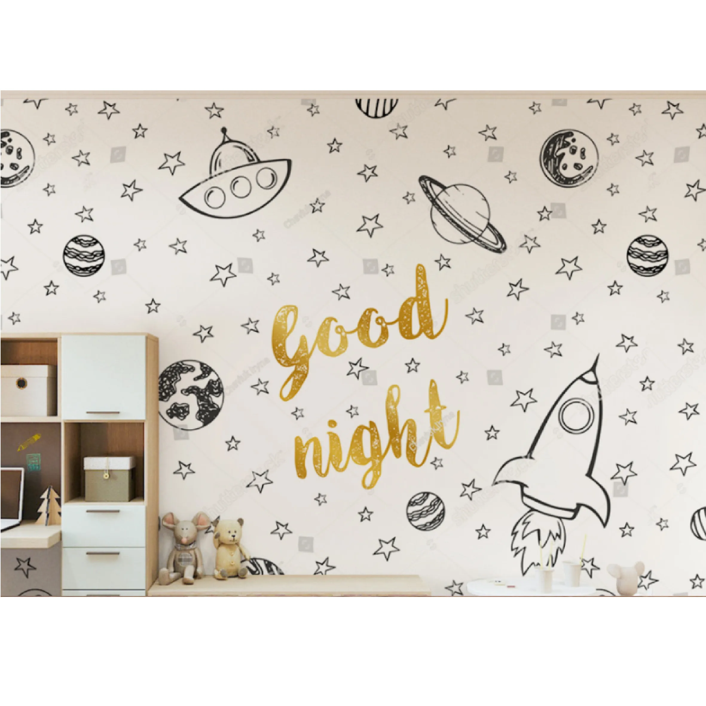 Home Stone,Tiles,Flooring & Walls Material Interior Wall Material Wallpaper Anhui Modenisite Soft Decoration Design Co., Ltd. Children's room baby room cartoon star spaceship background wallpaper