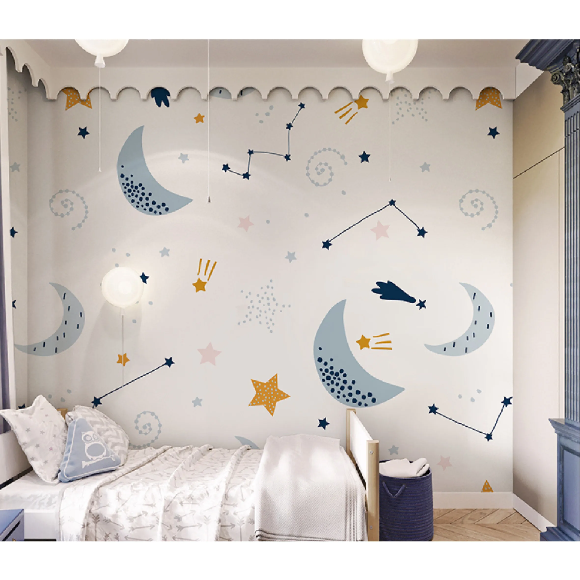Home Stone,Tiles,Flooring & Walls Material Interior Wall Material Wallpaper Anhui Modenisite Soft Decoration Design Co., Ltd. Factory customized popular children's room baby room cartoon night sky background wallpaper