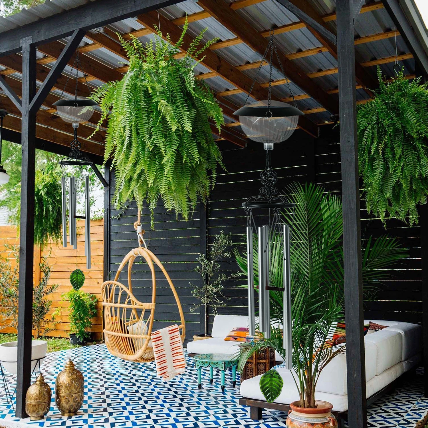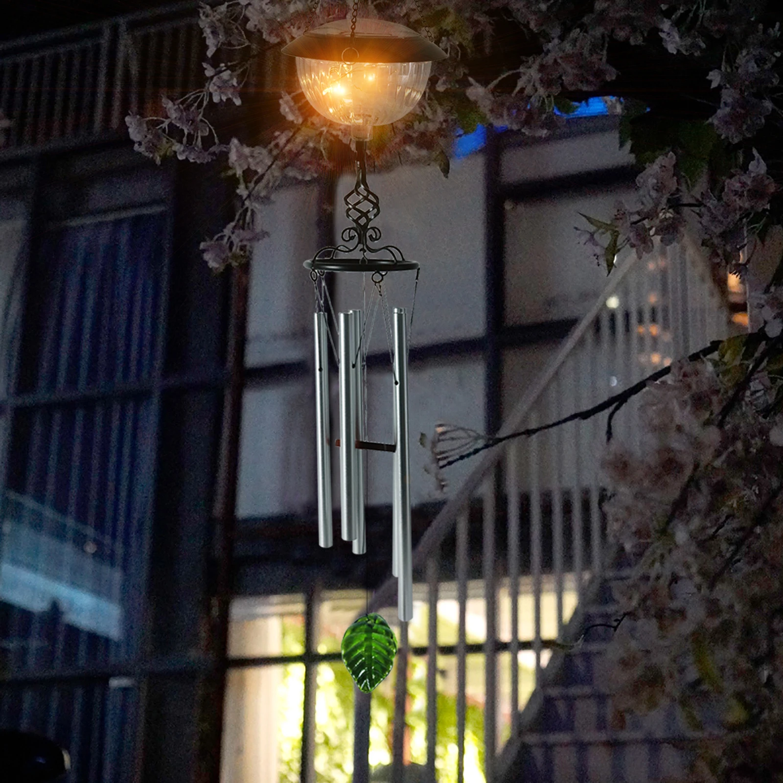 SOL4212 Solar Floating Wind Chime Light Warm White LED Waterproof Hanging Light For Garden Decoration