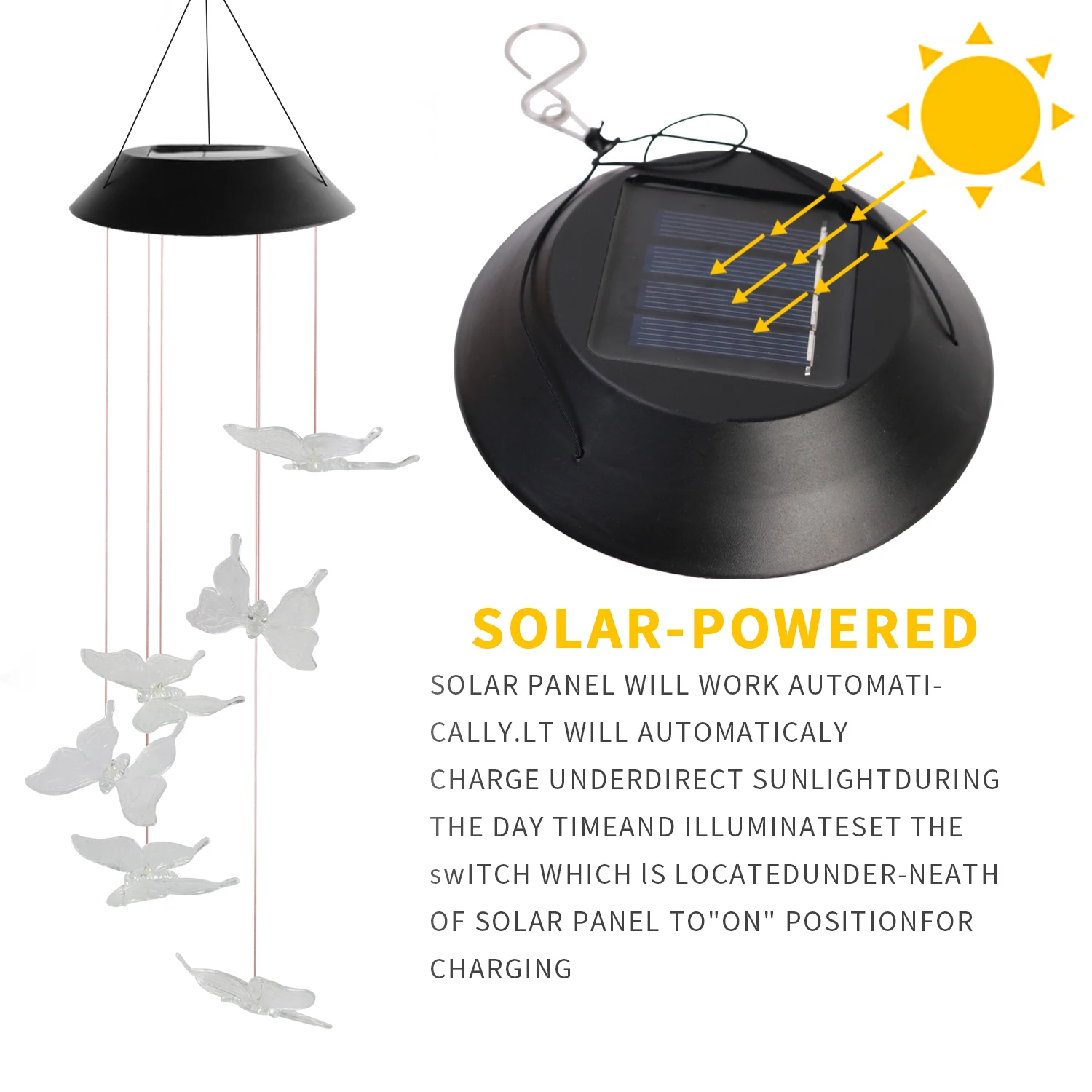 SOL2210F Solar Transparent Waterproof Butterfly Wind Chime Light For Garden Decoration