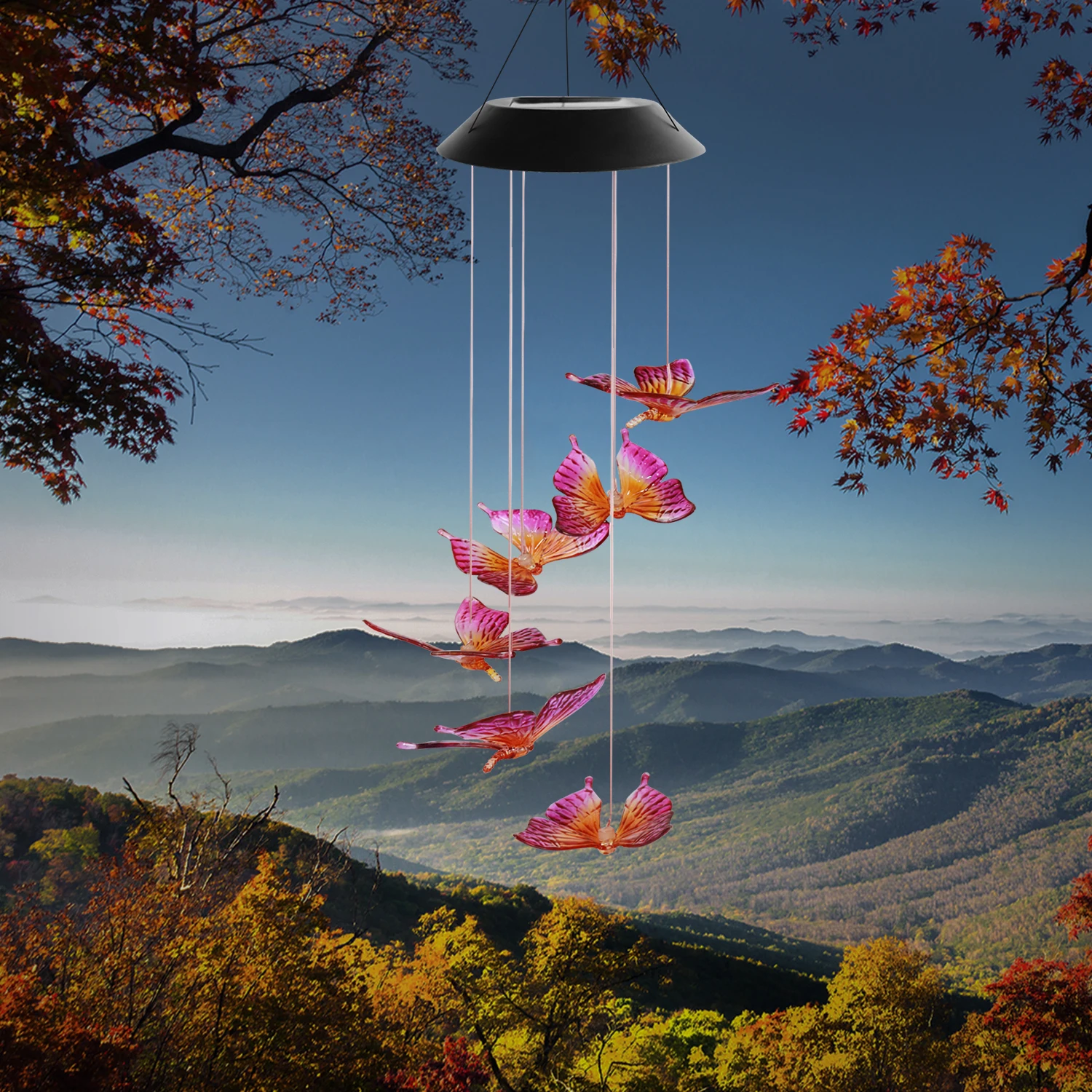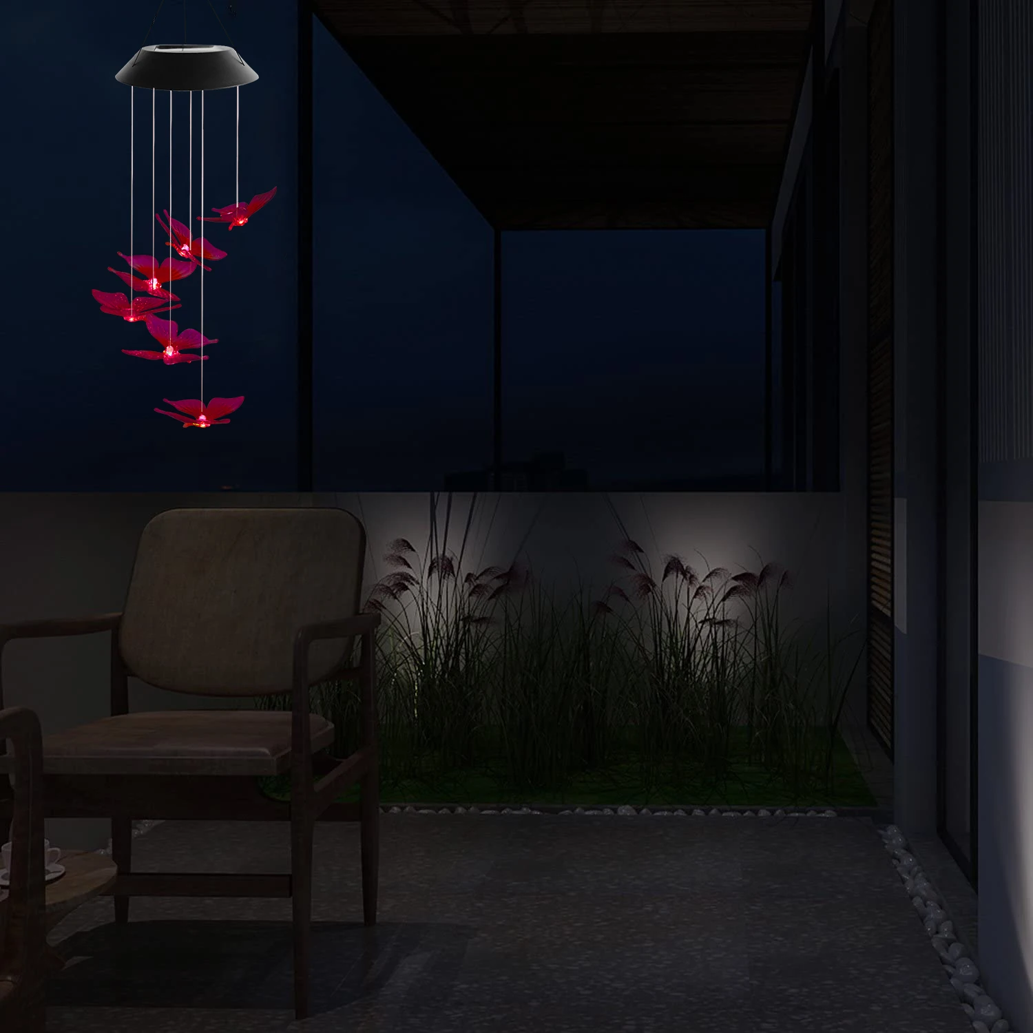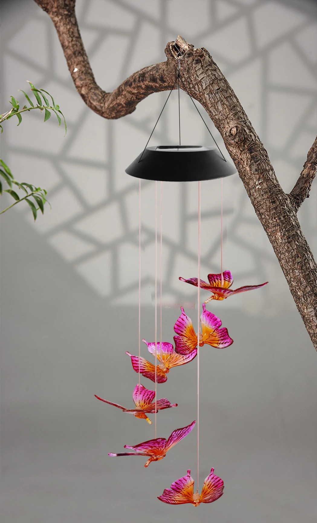 Home Lighting, Artwork & Interior Decoration Accessories Party Lighting Solar Decorative Lights Quanzhou Aolaigle Electronic Co., Ltd. SOL2010F Color Changing Solar Red Pink Butterfly Wind Chime Light LED Hanging Light For Garden Decoration